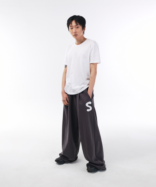 로고 아플리케 스웨트 팬츠[차콜]