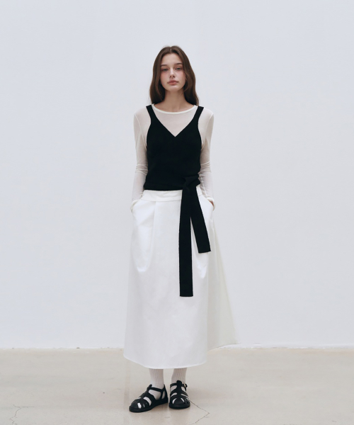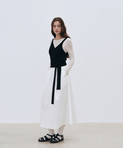 레이스 프릴 밴딩 미디스커트_2COLOR