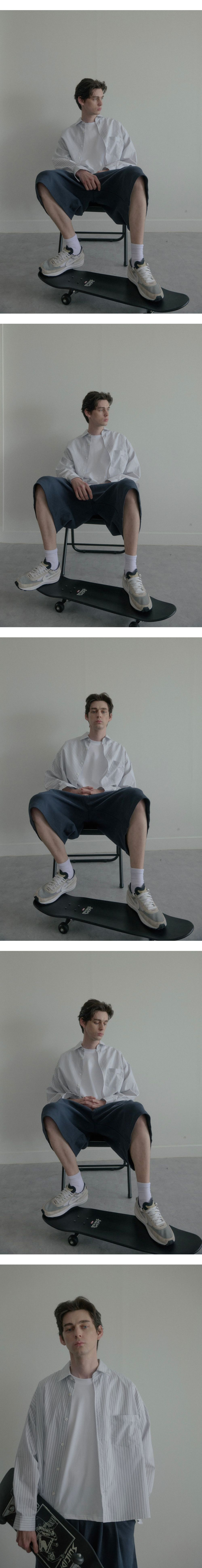 에센셜 옥스포드 크롭 스트라이프 셔츠_3color