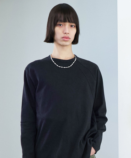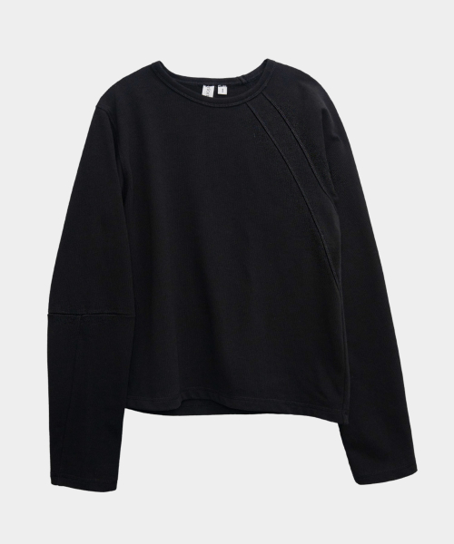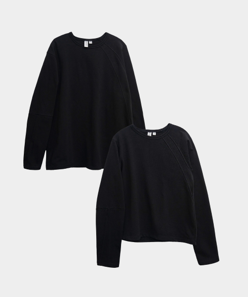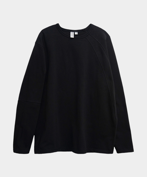 언발란스 절개 롱슬리브 티_BLACK : RADIANT078