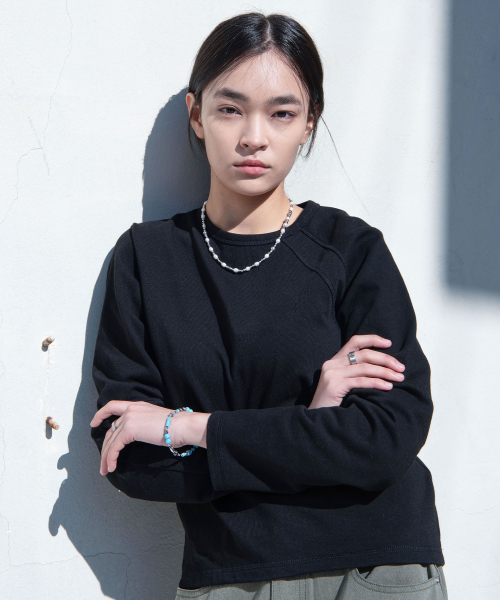 언발란스 절개 롱슬리브 티_CHARCOAL : RADIANT077