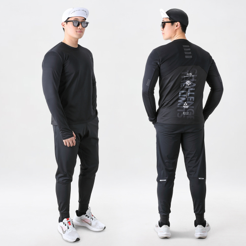 런리플렉터 블랙 티셔츠+런어택 조거핏 레깅스 팬츠 2종 세트