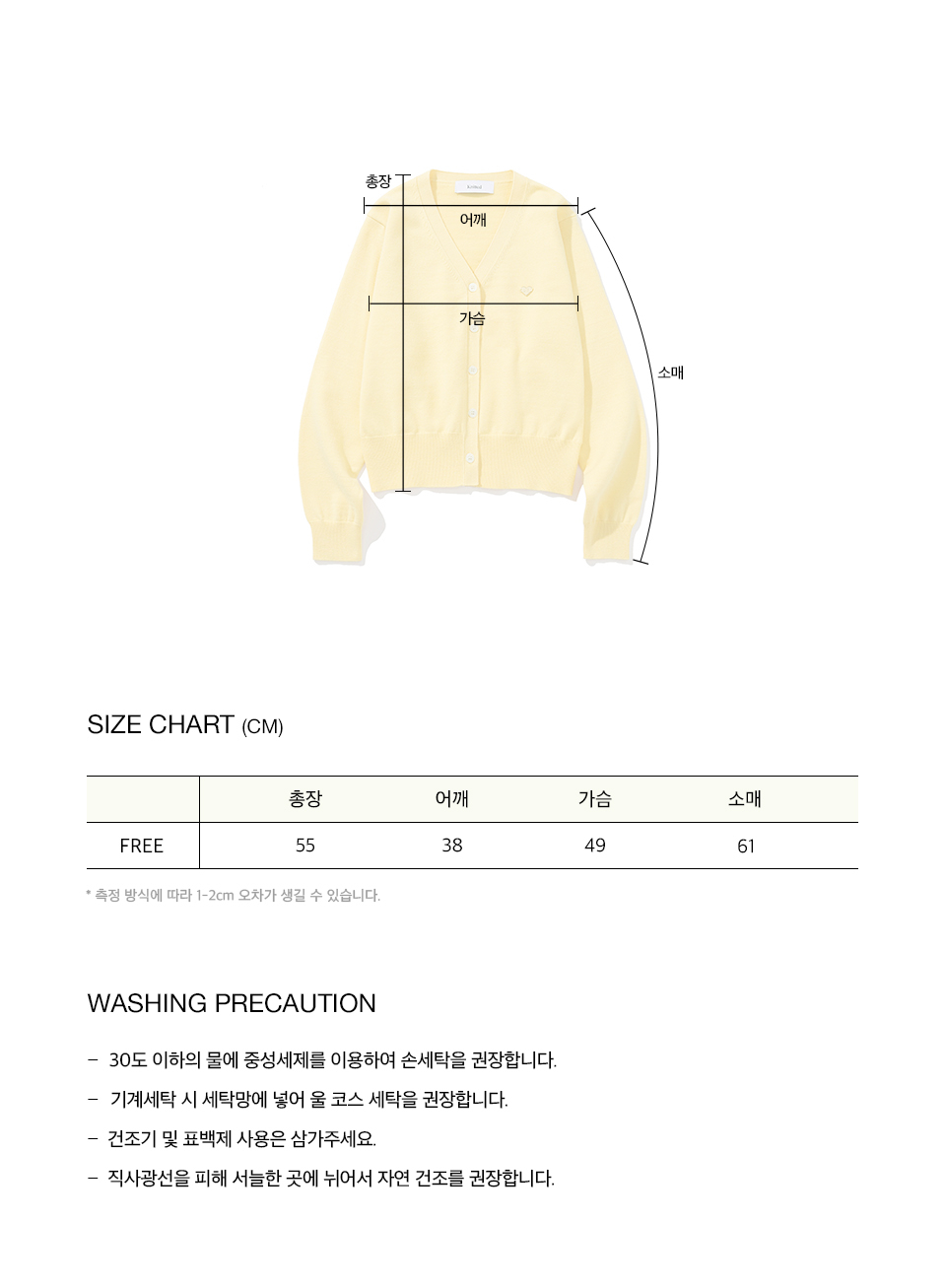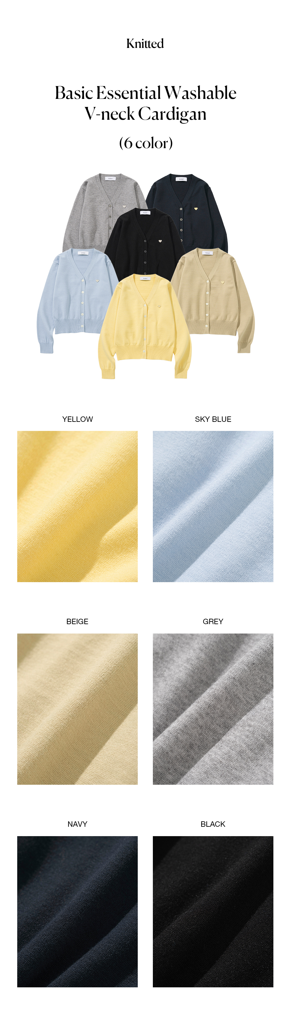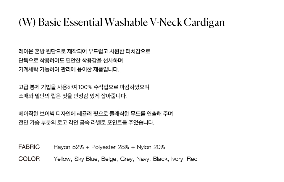 (W) 베이직 에센셜 워셔블 브이넥 가디건 YELLOW