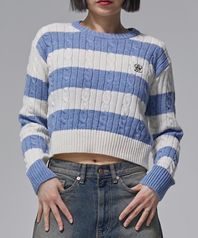 마들렌 크롭 케이블 스트라이프 니트