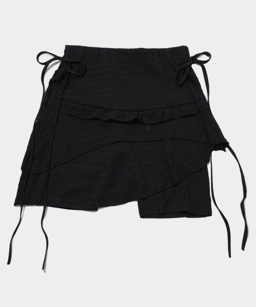 프릴 언발란스 스커트 허리 밴딩 레깅스 바이크 팬츠 [블랙]