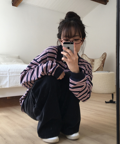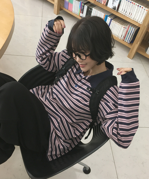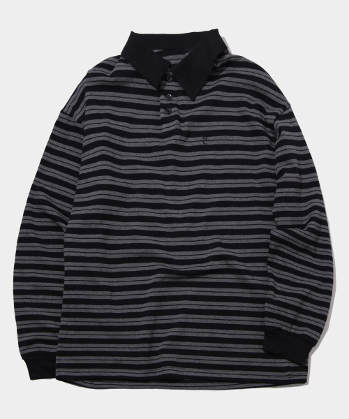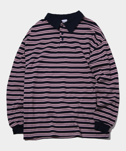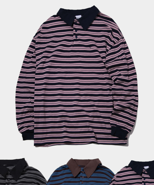 스트라이프 럭비 롱슬리브 오버핏 피케 카라 긴팔 폴로 티셔츠_3COLOR