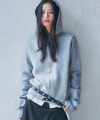 에센셜 소프트 리브드 베이직 워셔블 니트 아일렛 디테일 후드 집업 _ 2COLOR