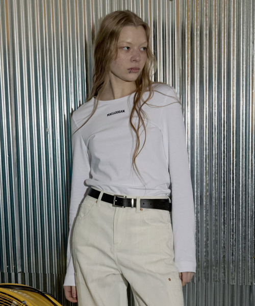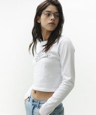 루디아 3654 레터링 슬림핏 오프화이트 크롭 긴팔티