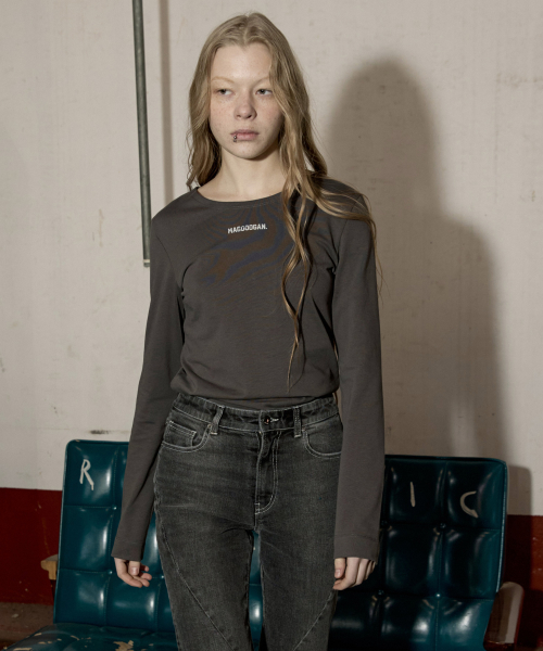 루디아 3655 레터링 스탠다드핏 다크그레이 긴팔티