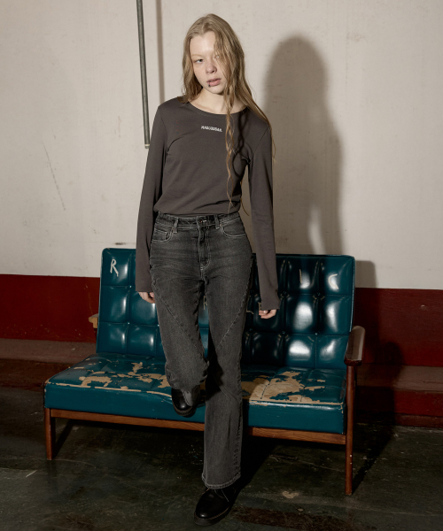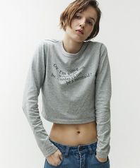 루디아 3654 레터링 슬림핏 멜란지그레이 크롭 긴팔티