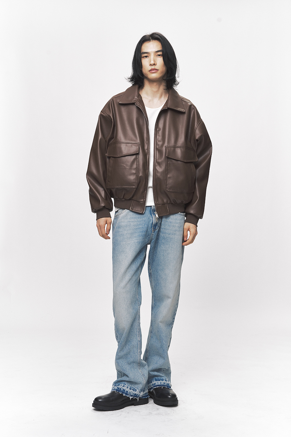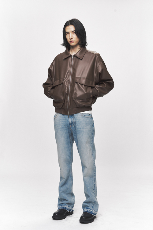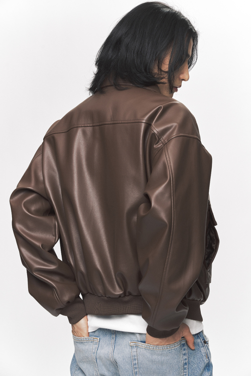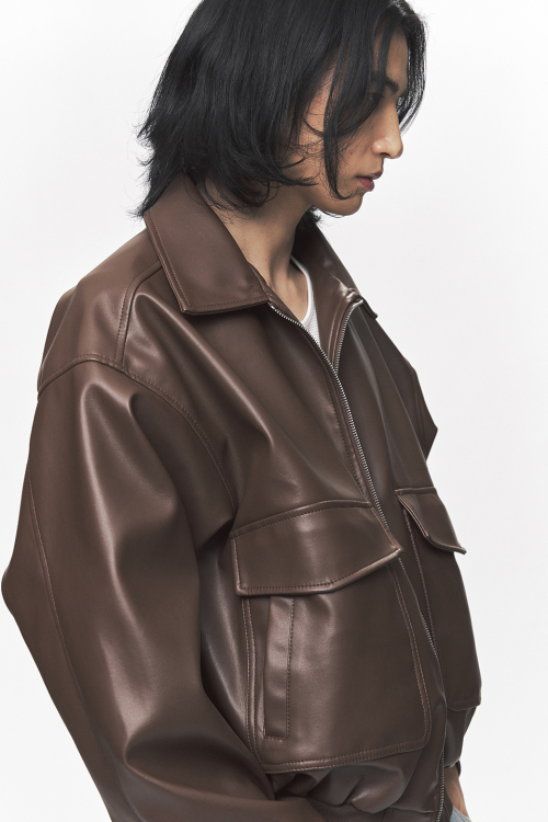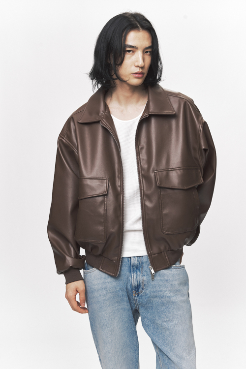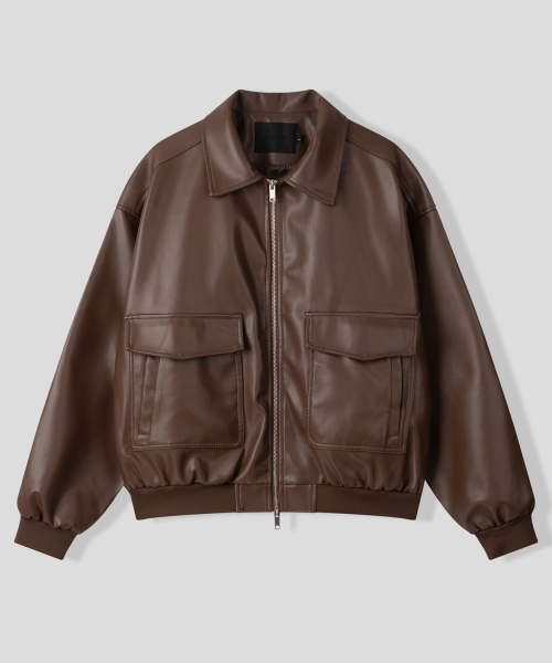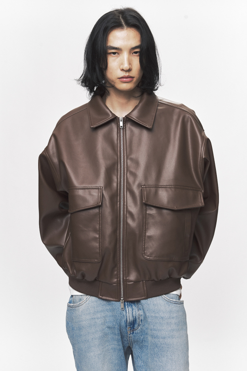 심플리시티 비건 레더 블루종 자켓[브라운]