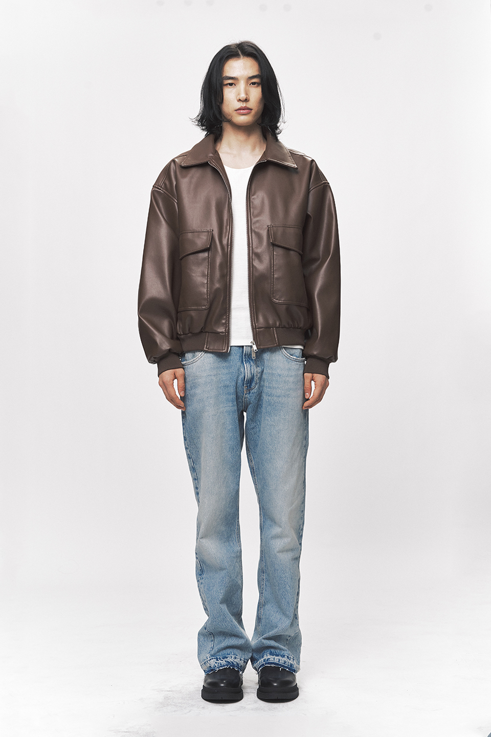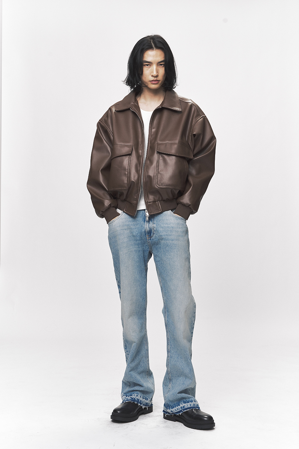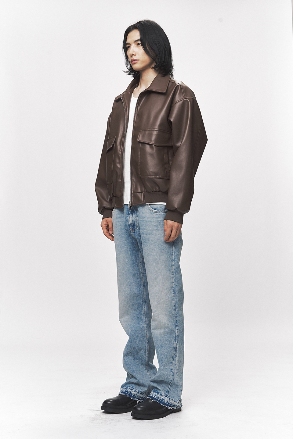 심플리시티 비건 레더 블루종 자켓[브라운]