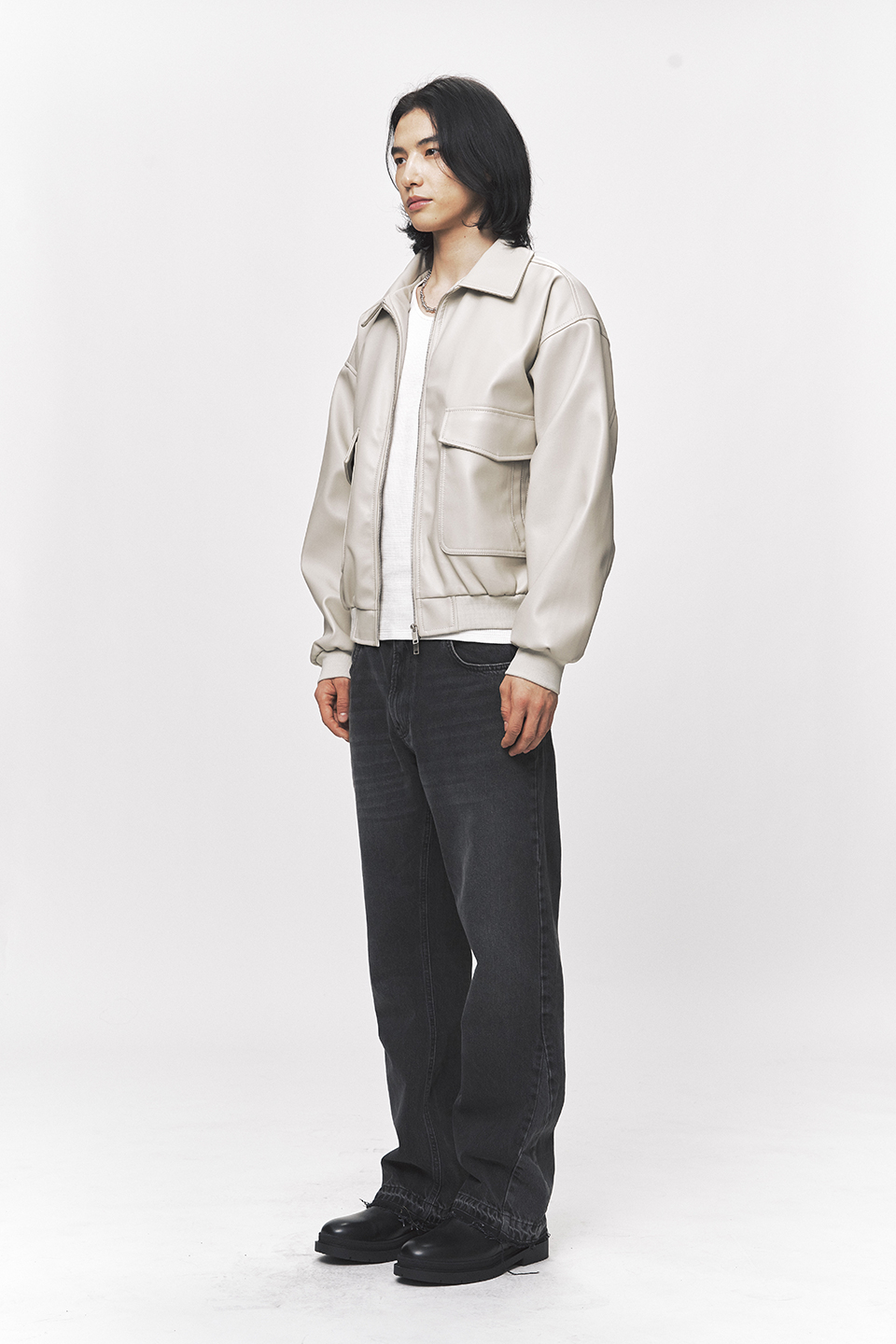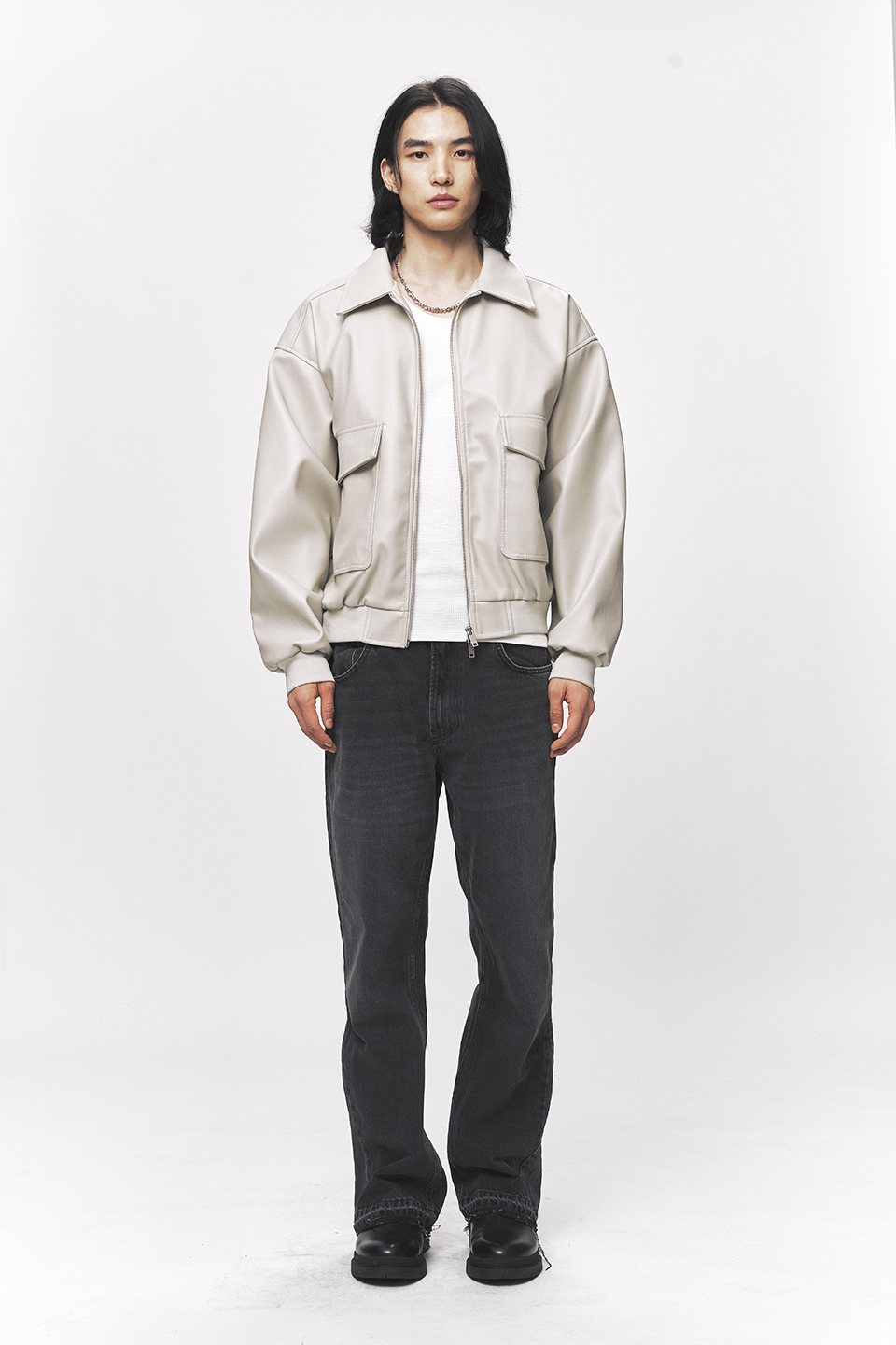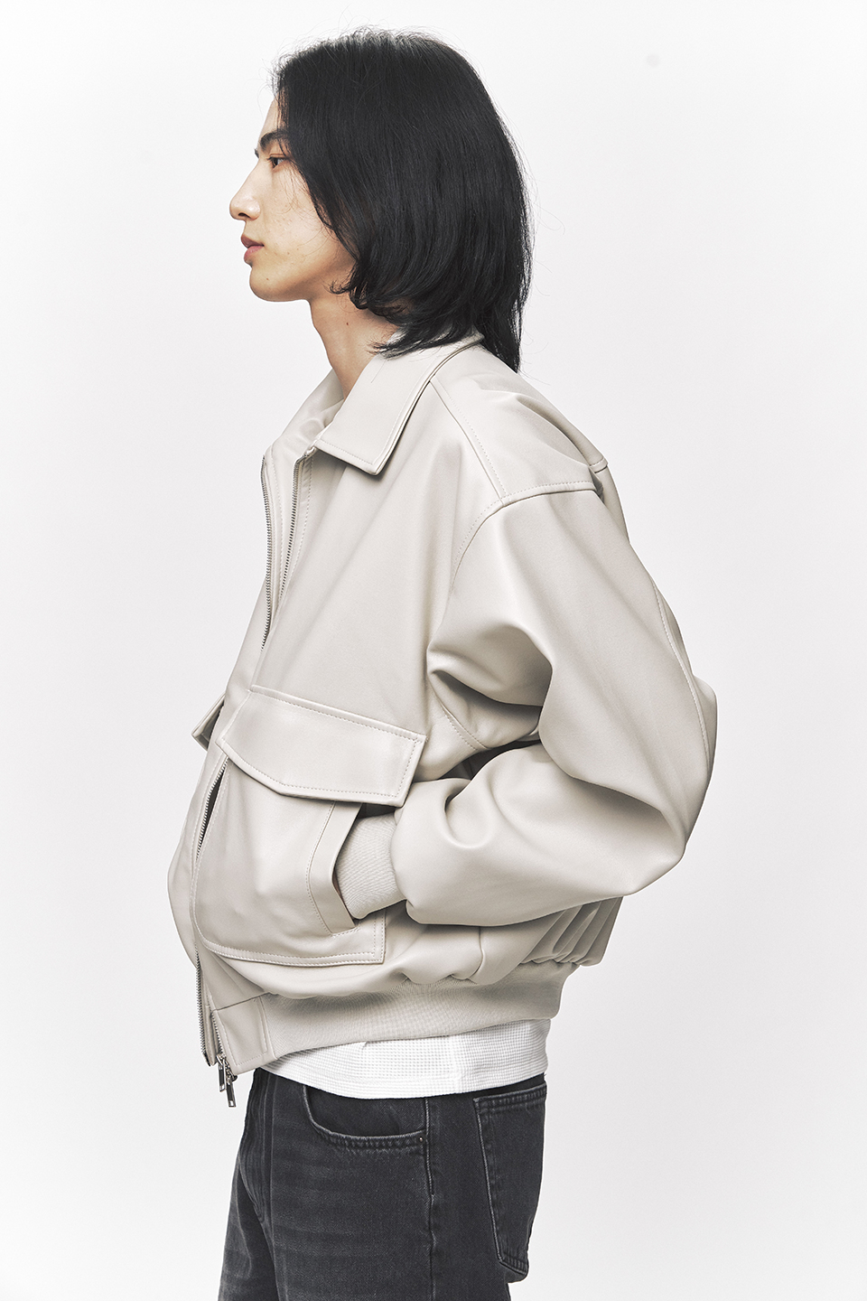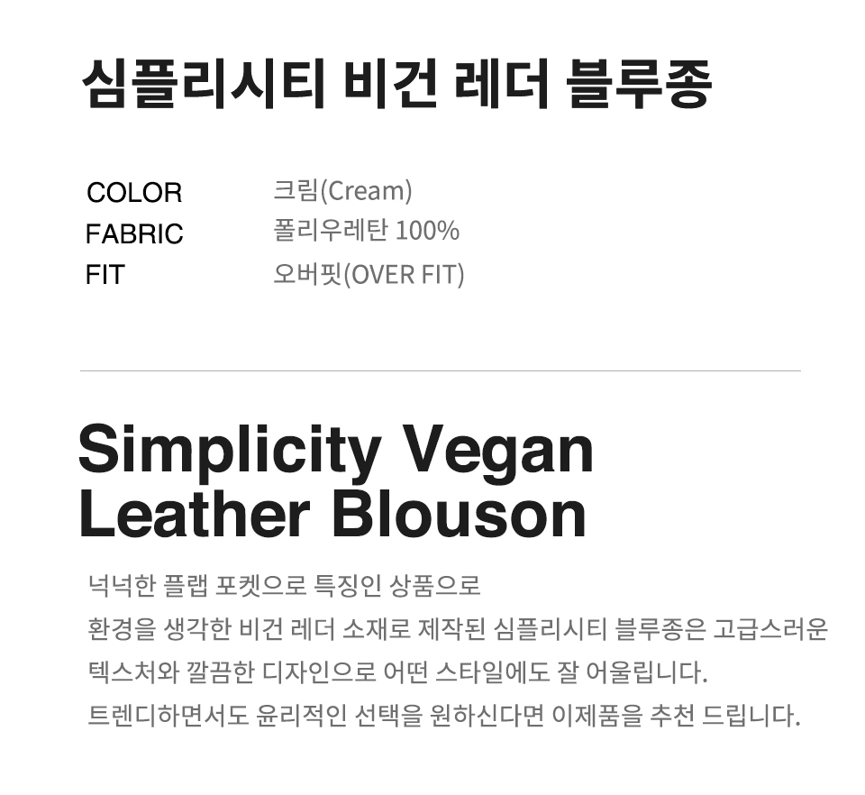 심플리시티 비건 레더 블루종 자켓 [크림]