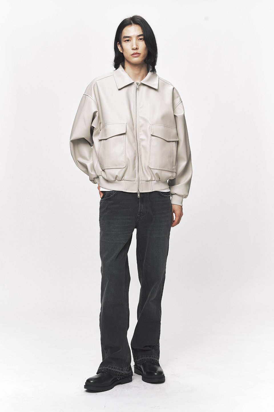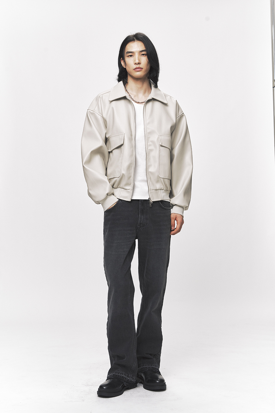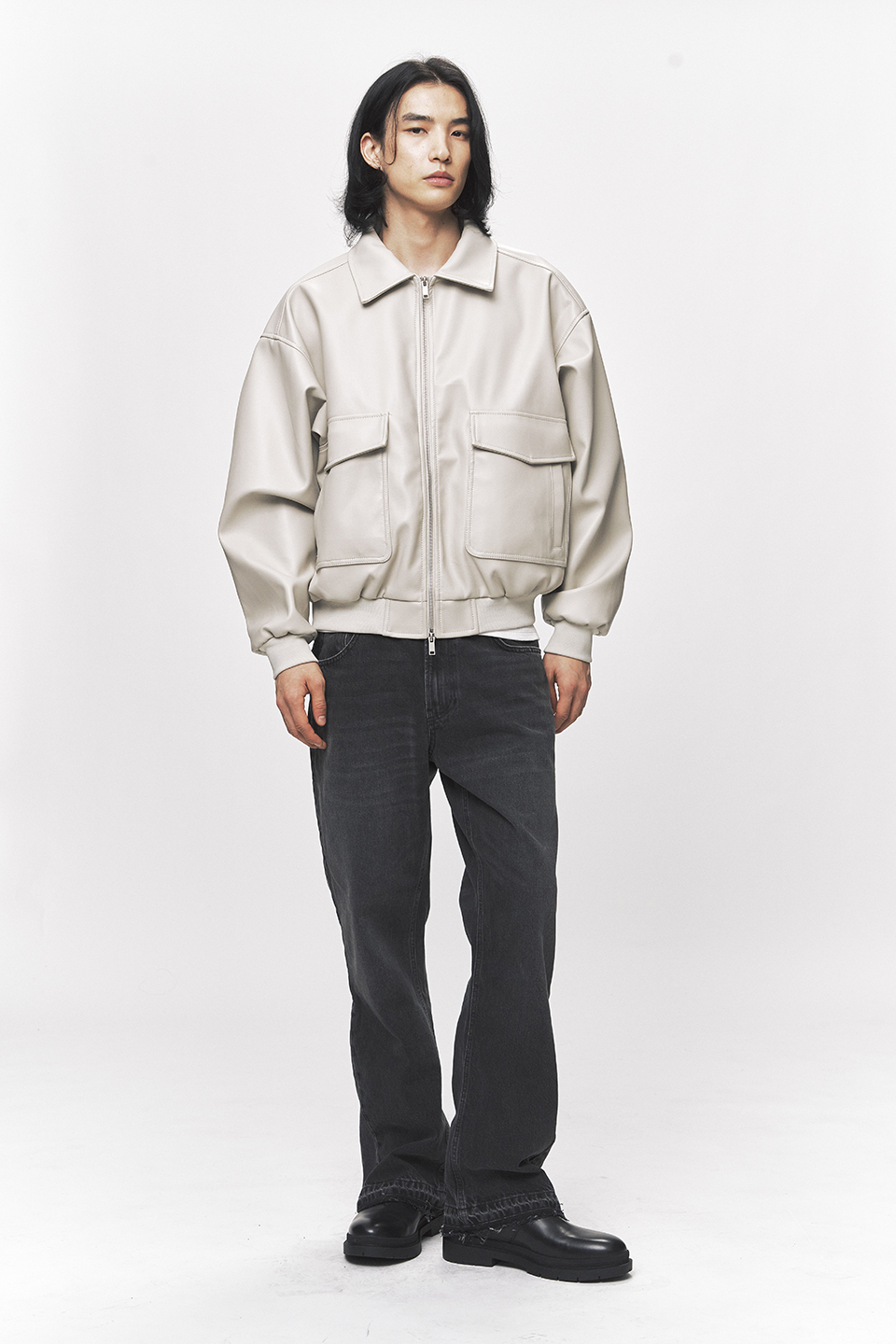 심플리시티 비건 레더 블루종 자켓 [크림]