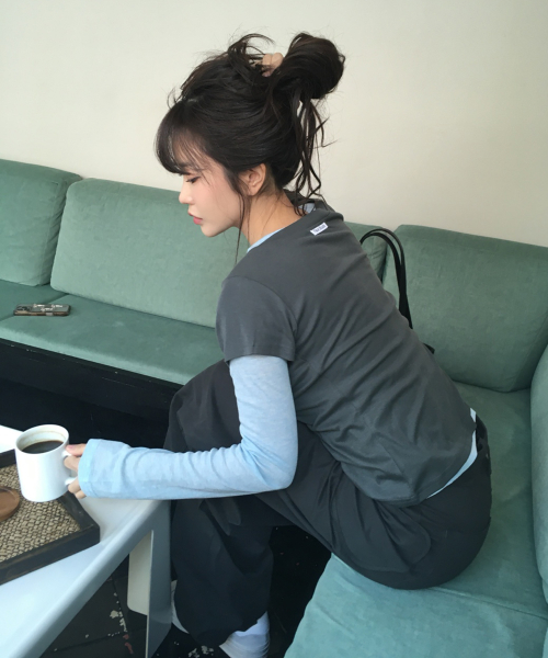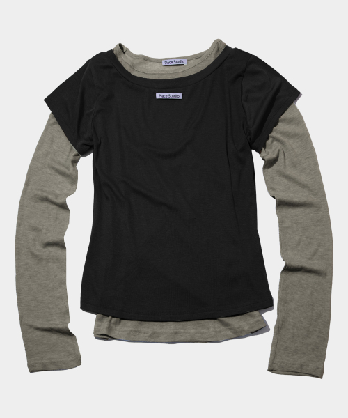 올인원 언발 더블 배색 레이어드 롱슬리브 티 세트_2COLOR