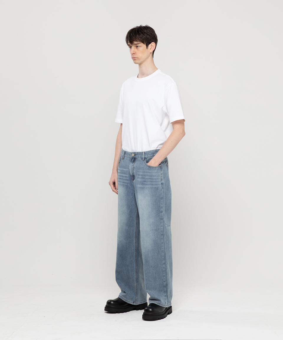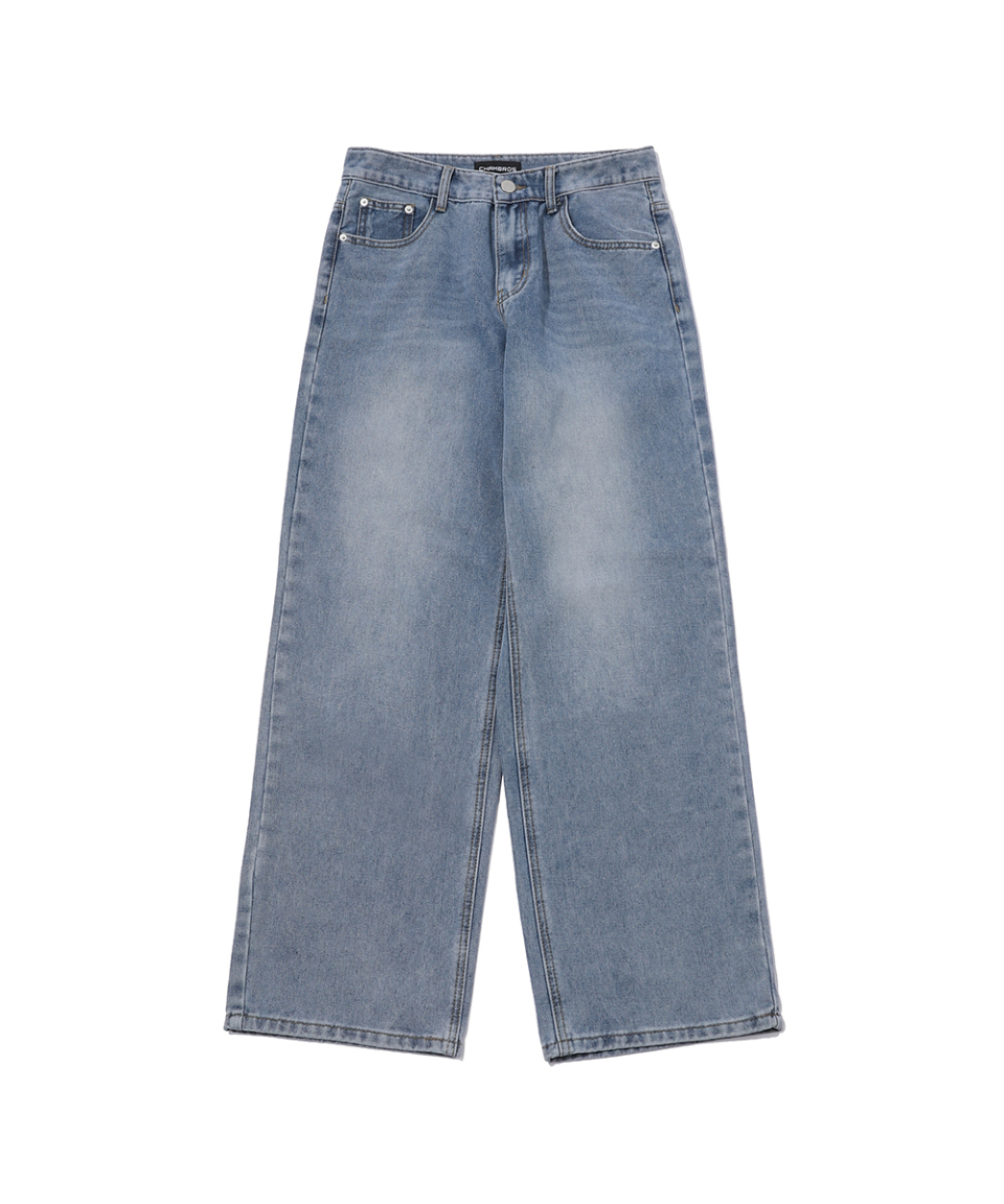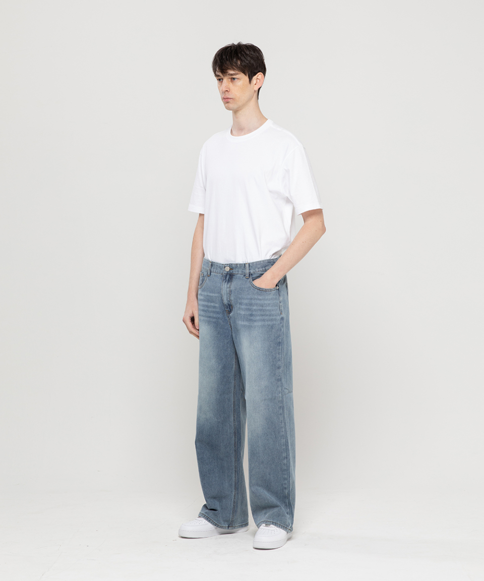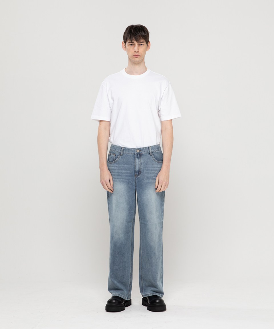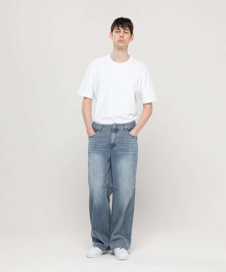 베이직 워싱 와이드 데님 팬츠[라이트인디고]