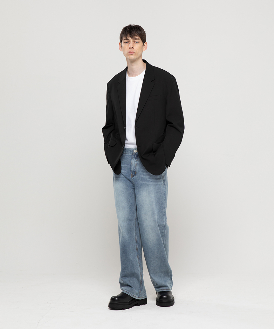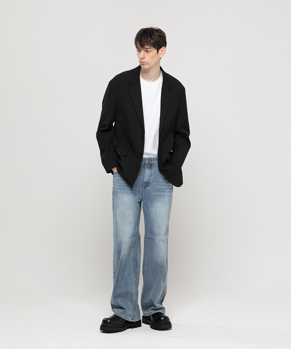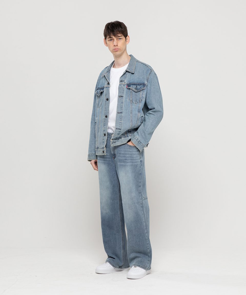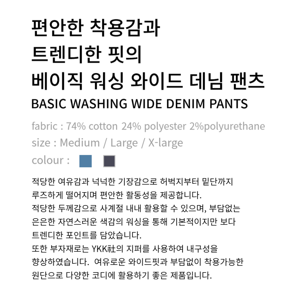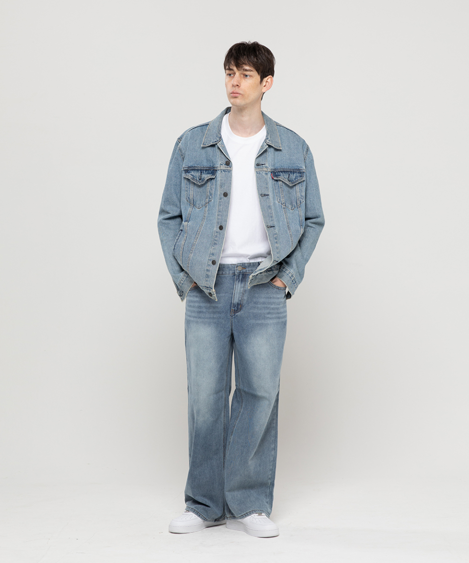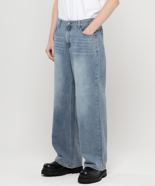 베이직 워싱 와이드 데님 팬츠[라이트인디고]