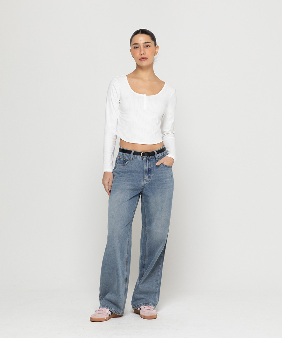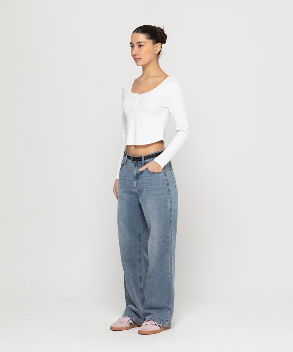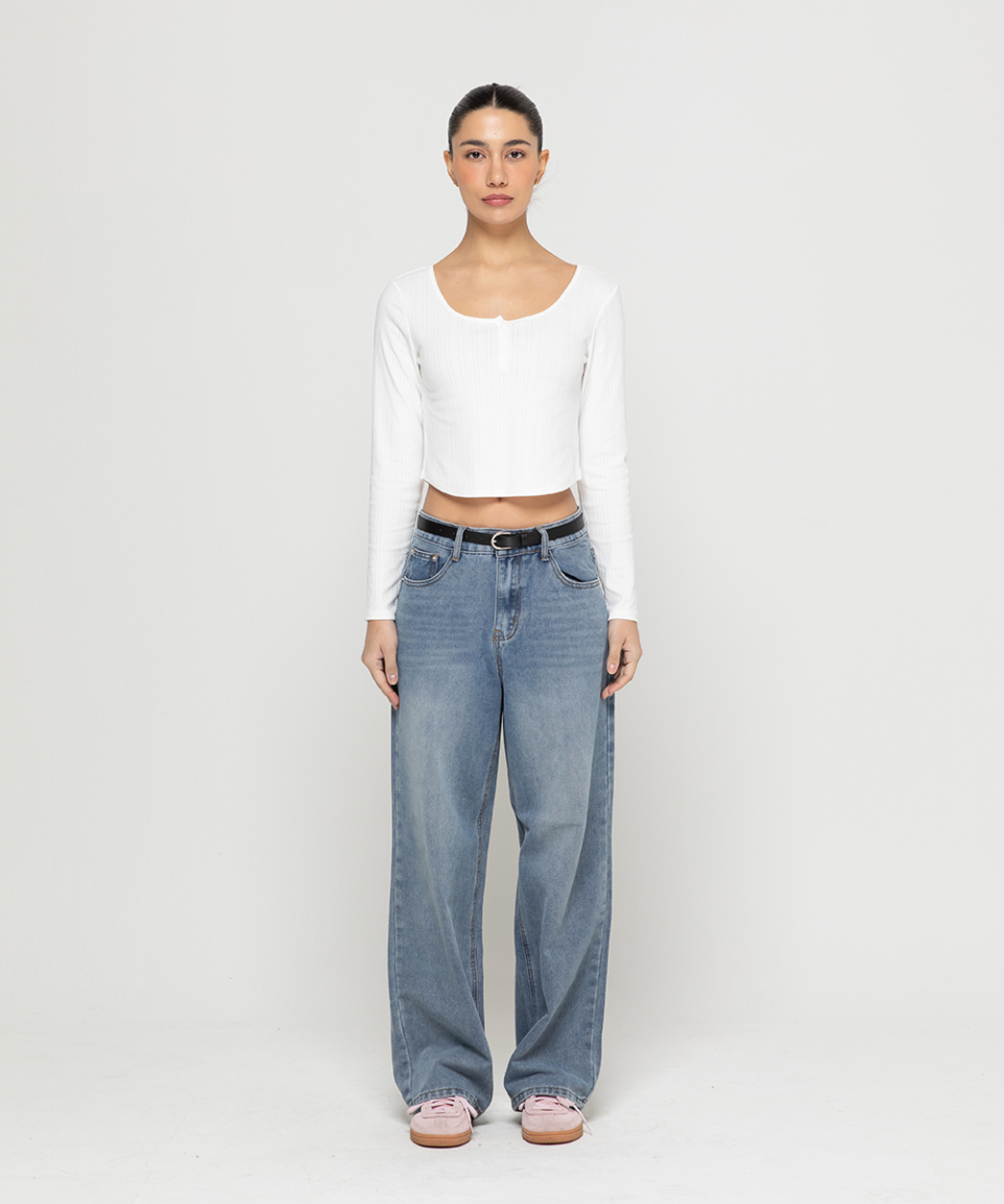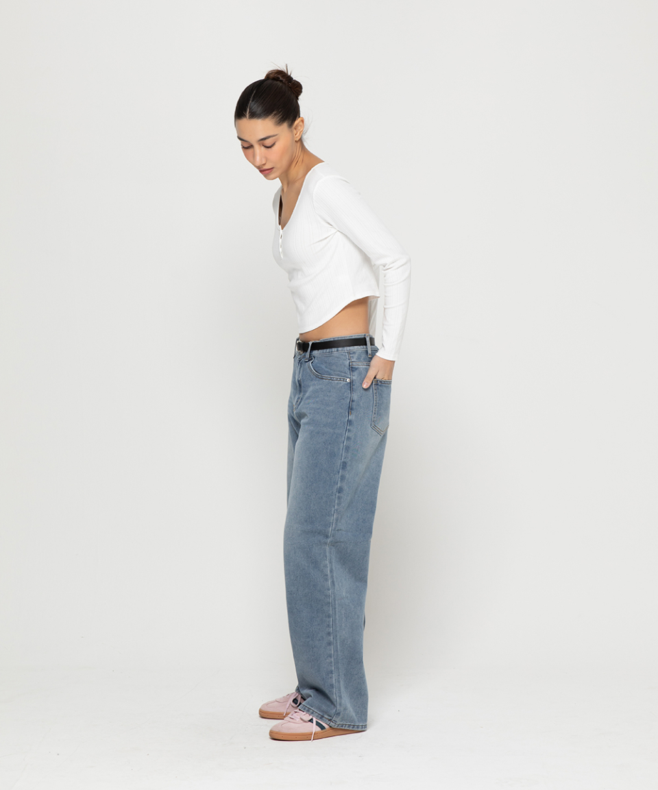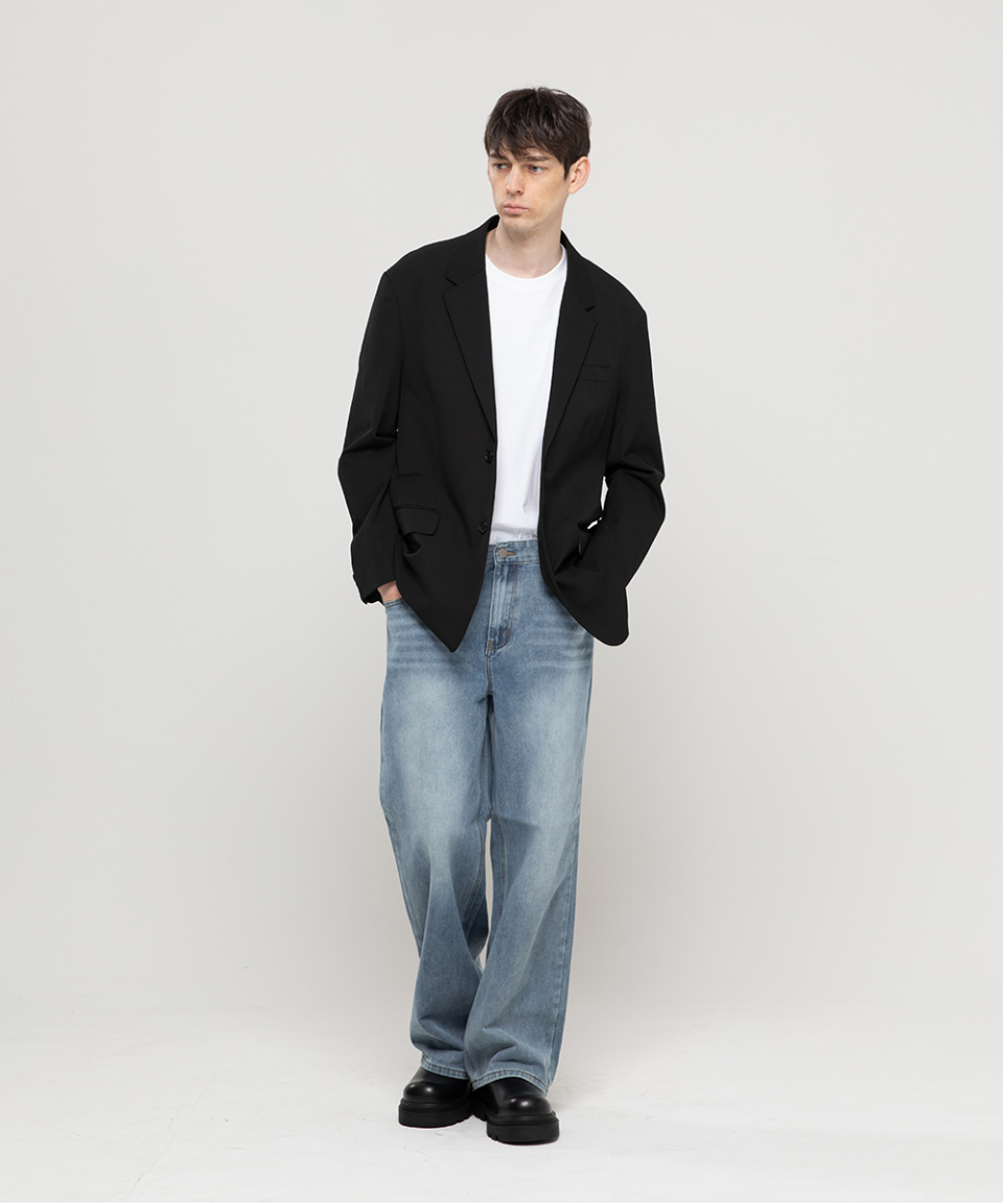 베이직 워싱 와이드 데님 팬츠[라이트인디고]