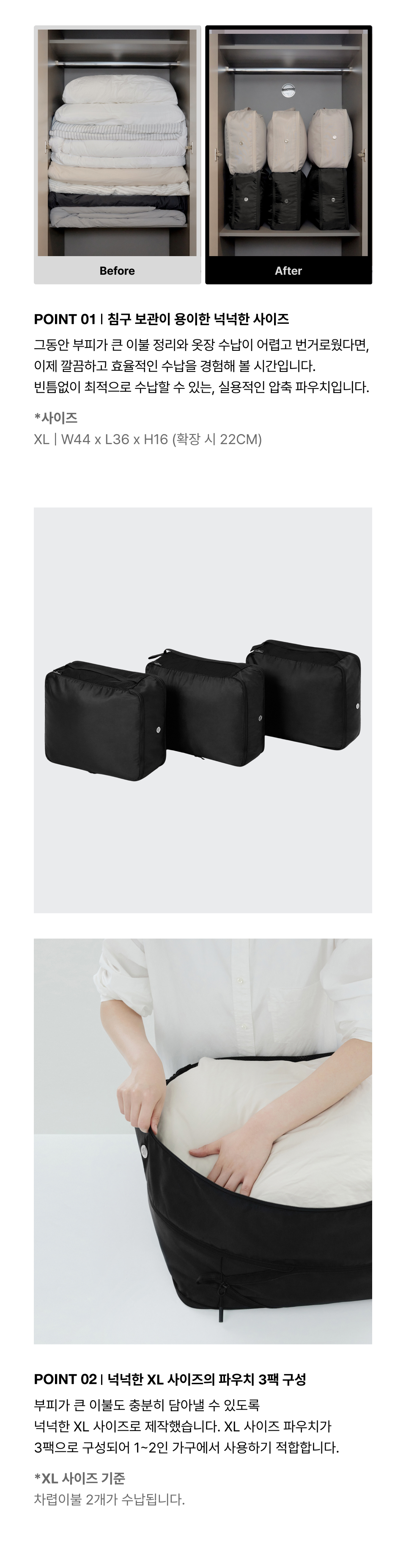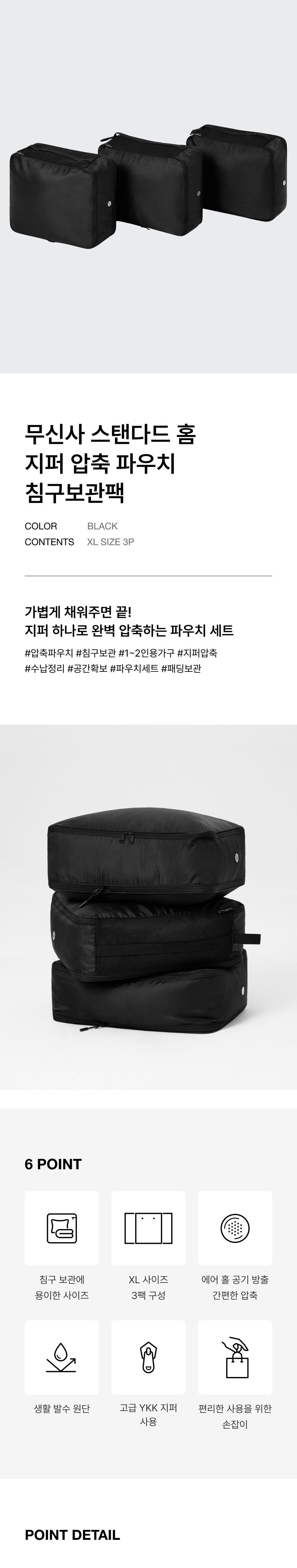지퍼 압축 파우치 침구보관팩 [블랙]