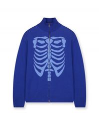 SKELETON HIGH NECK KNIT ZIP UP BLUE