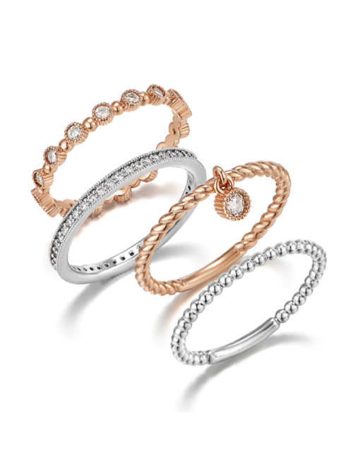드롭 포인트 콤비 레이어드 링 4종 세트 ELBRWR108