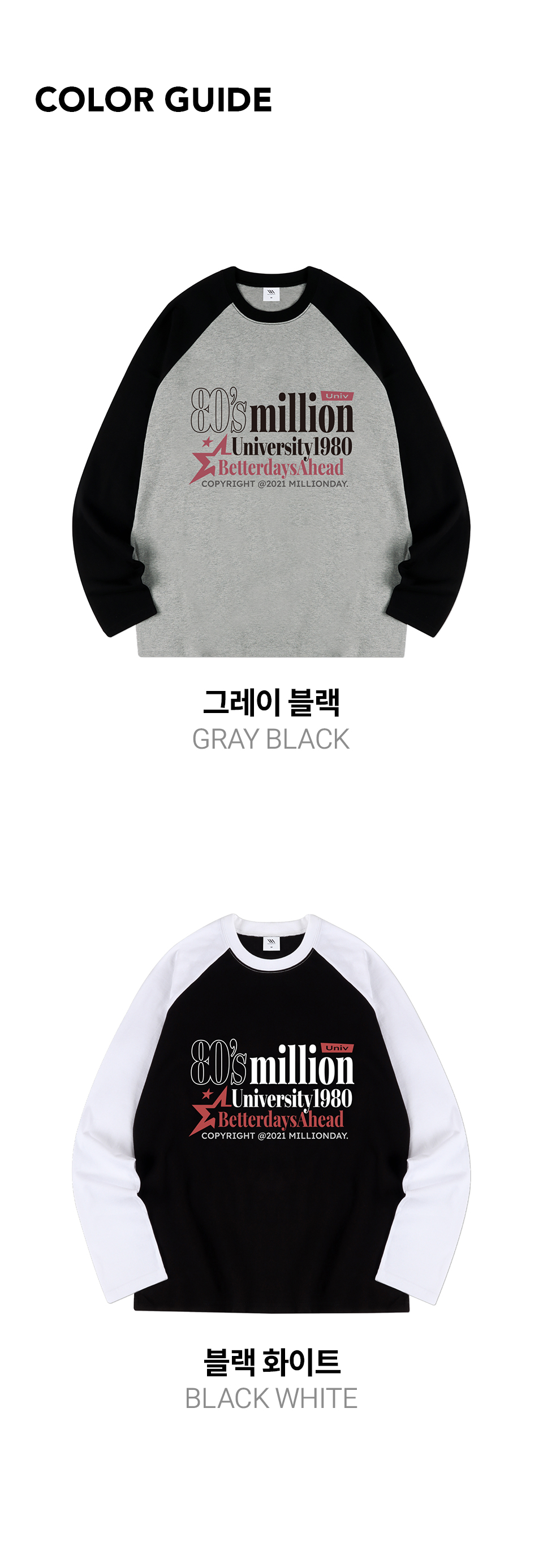 밀리언데이(MILLION DAY)는 'Anything can happen in a day(하루 안에 그 어떤 일이든 일어날 수 있다)'라는 슬로건 아래 키치한 그래픽과 디자인, 로고 플레이를 바탕으로 20~30대를 타깃으로 한 영 캐주얼 브랜드입니다.
