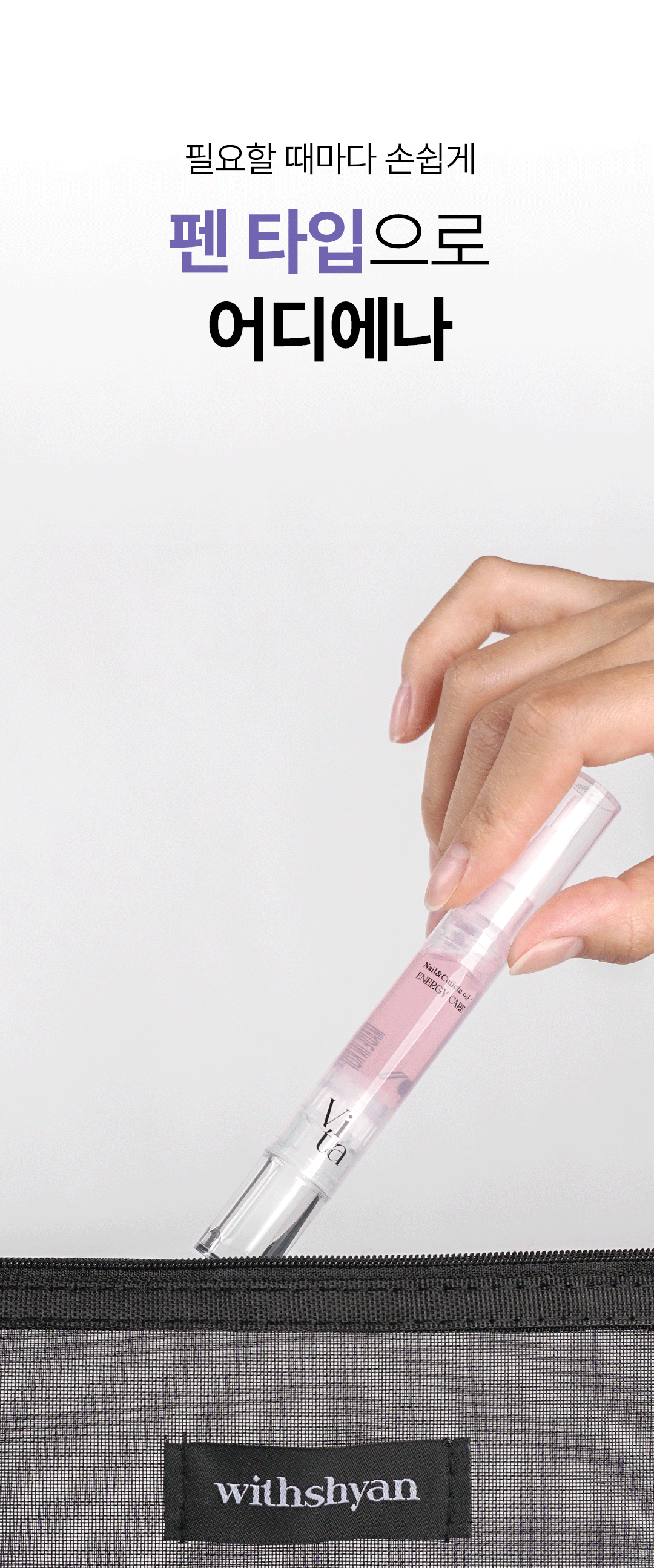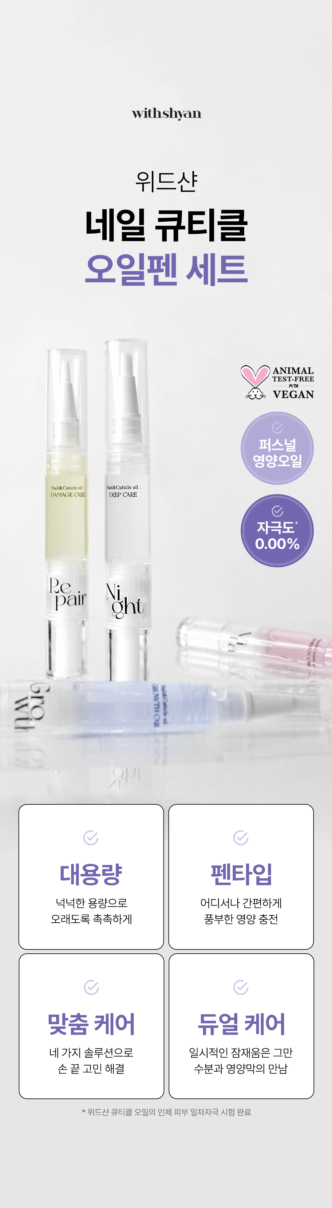 위드샨(WITHSHYAN)은 60초 만에 마르는 매니큐어 등 누구나 쉽고 편안하게 사용할 수 있는 셀프 네일 제품을 선보입니다.