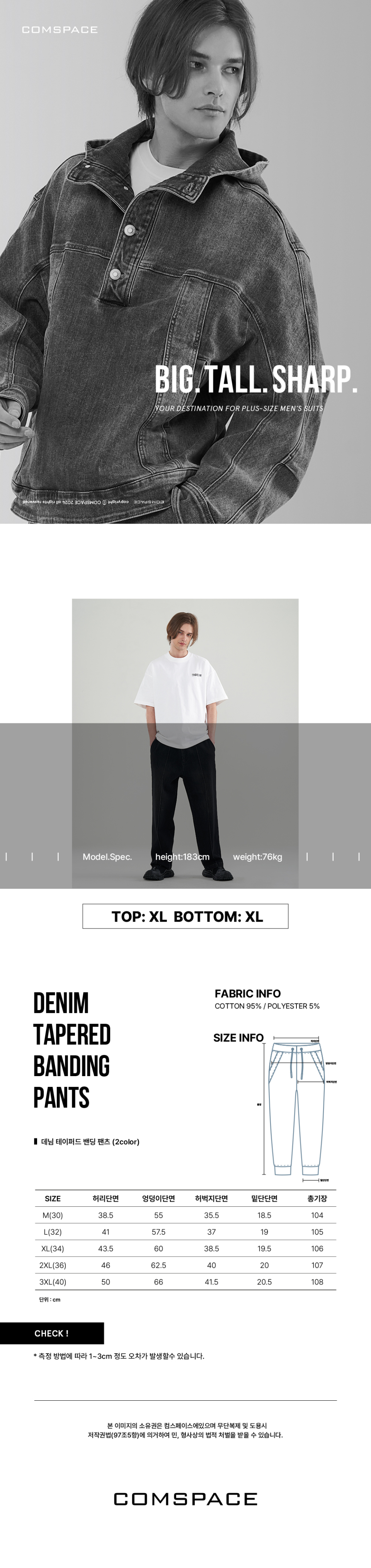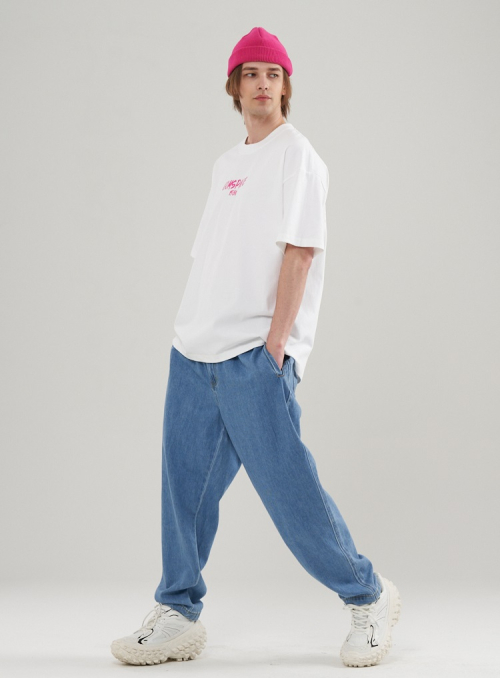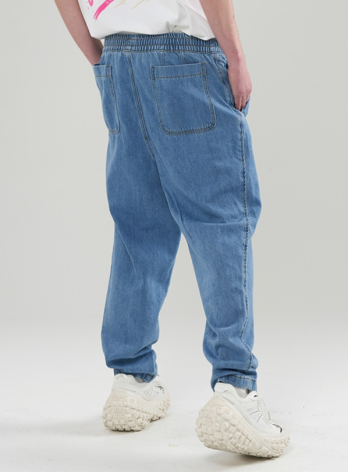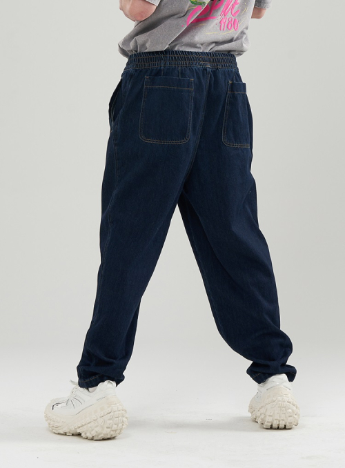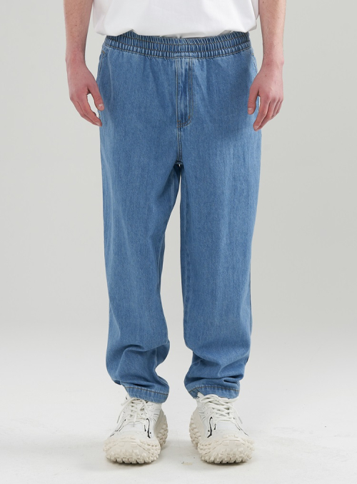 [M~3XL] 데님 테이퍼드 밴딩 팬츠