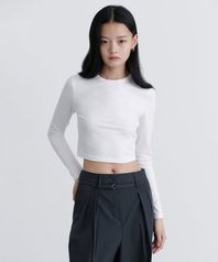우먼즈 슬림 크롭 크루 넥 긴소매 티셔츠 [화이트]