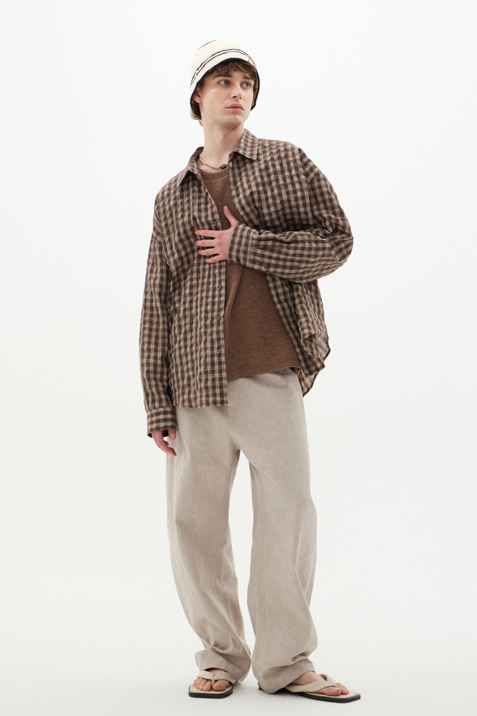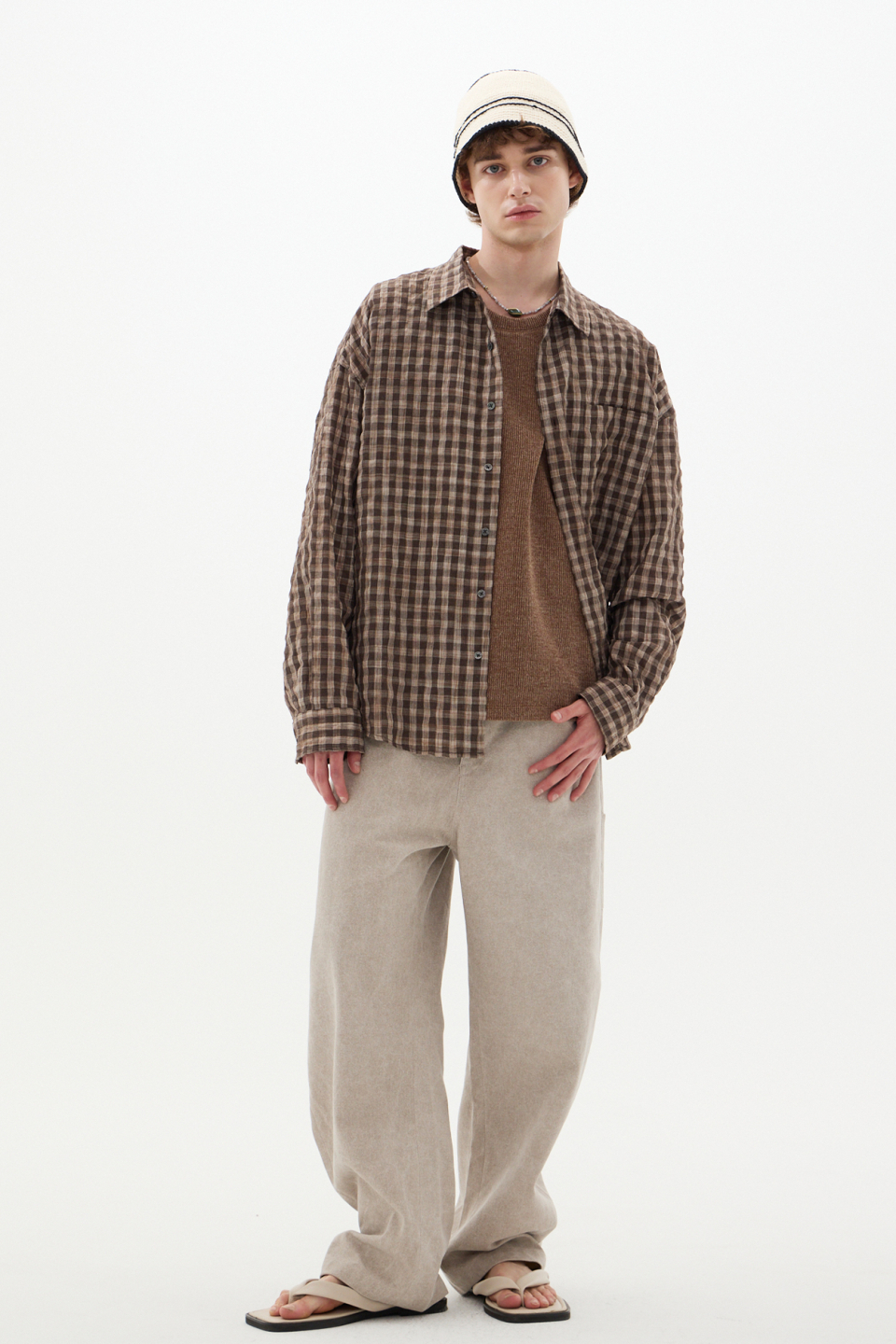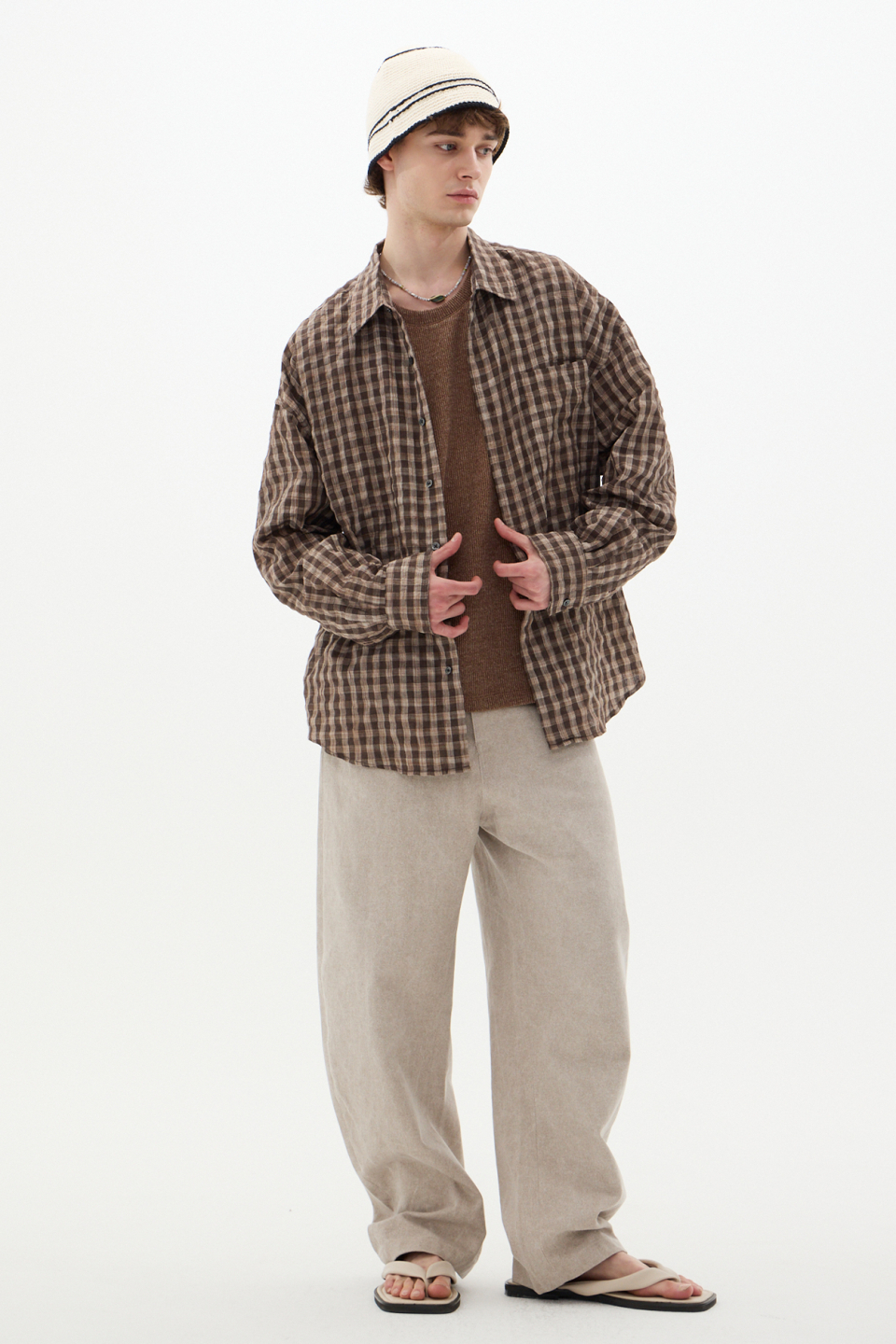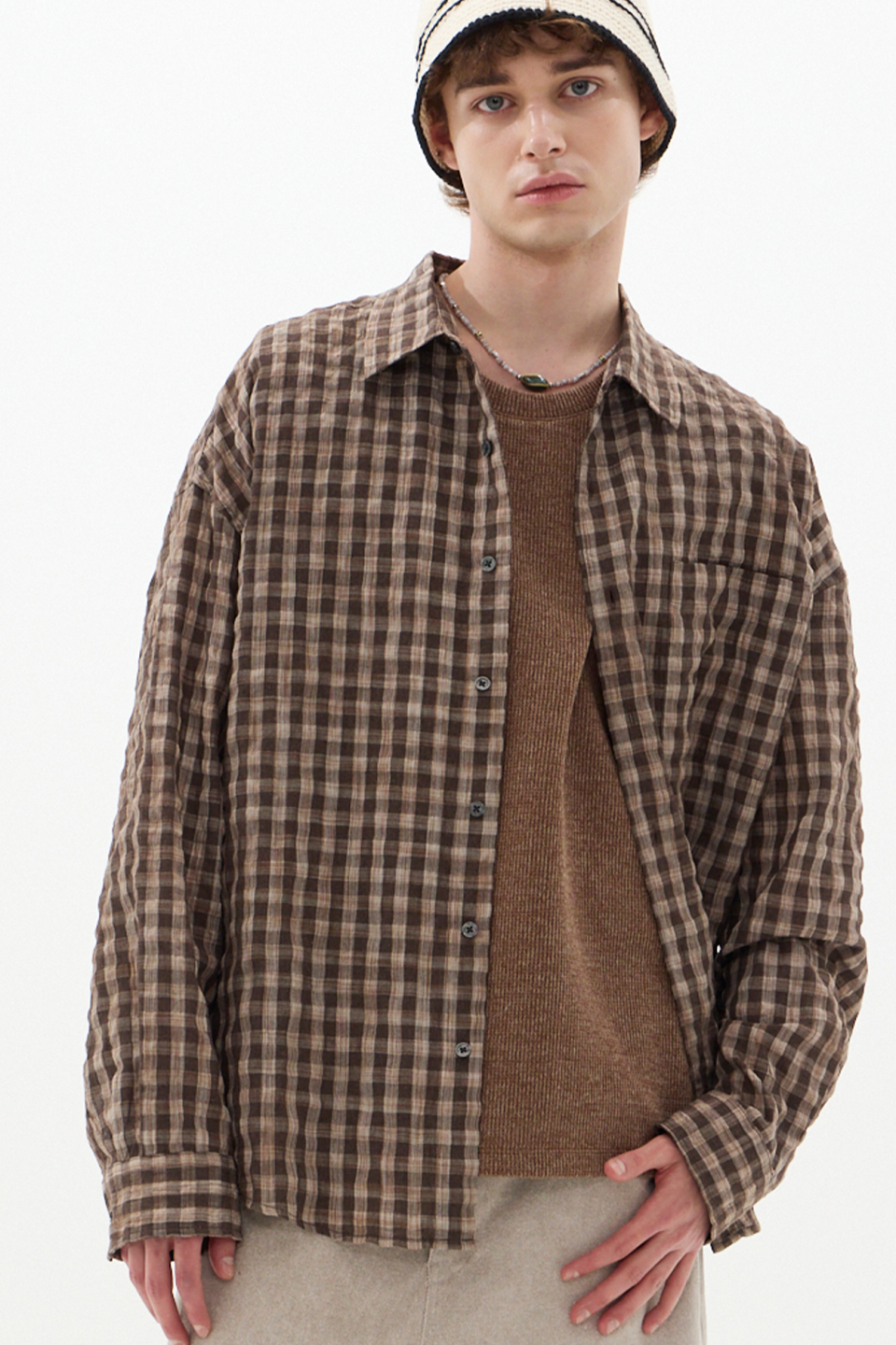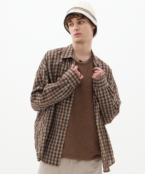 섬세한 텍스처가 감도는 브라운 체크 셔츠
