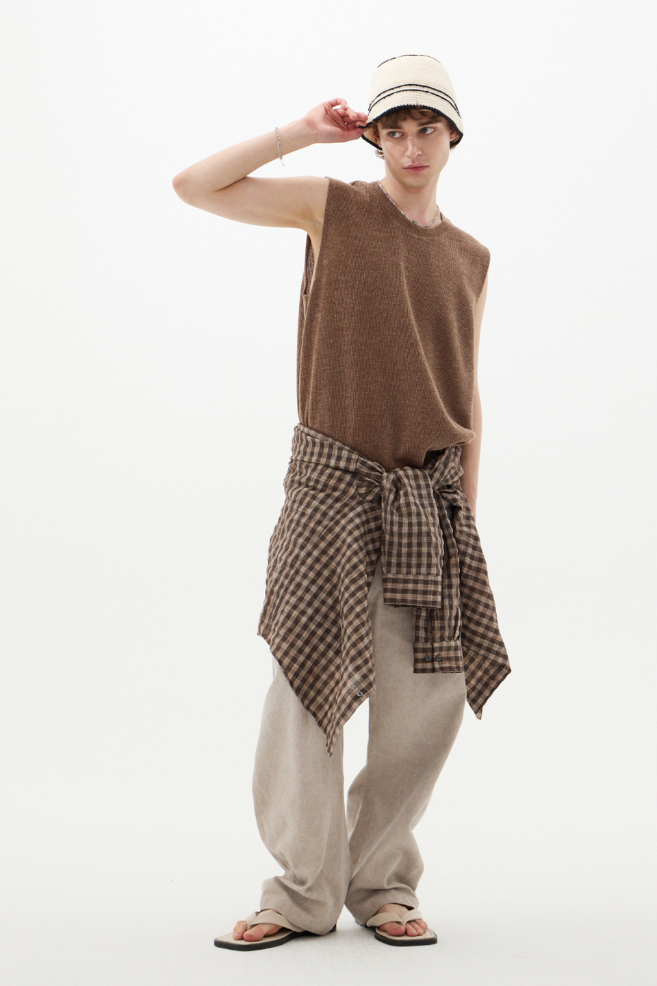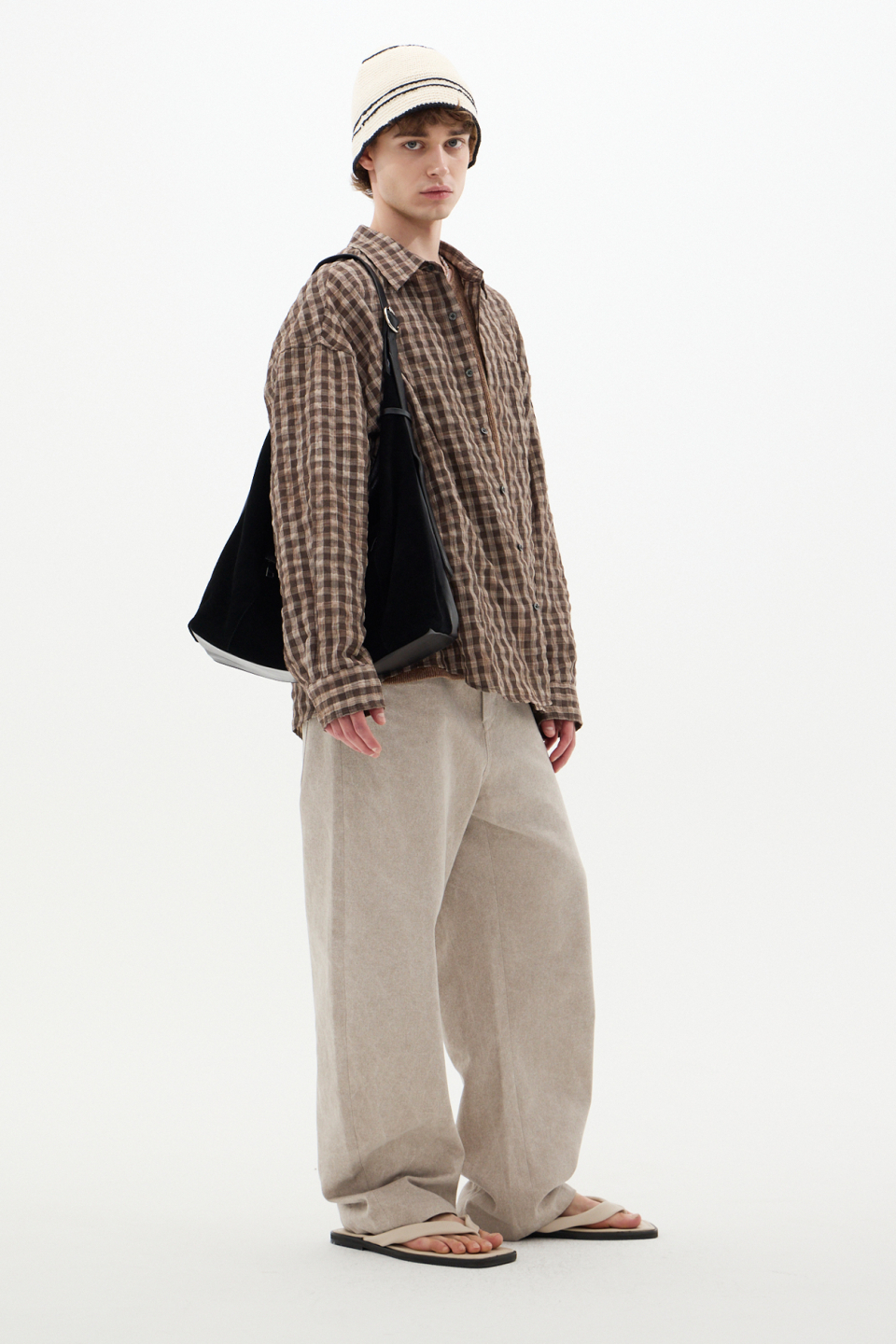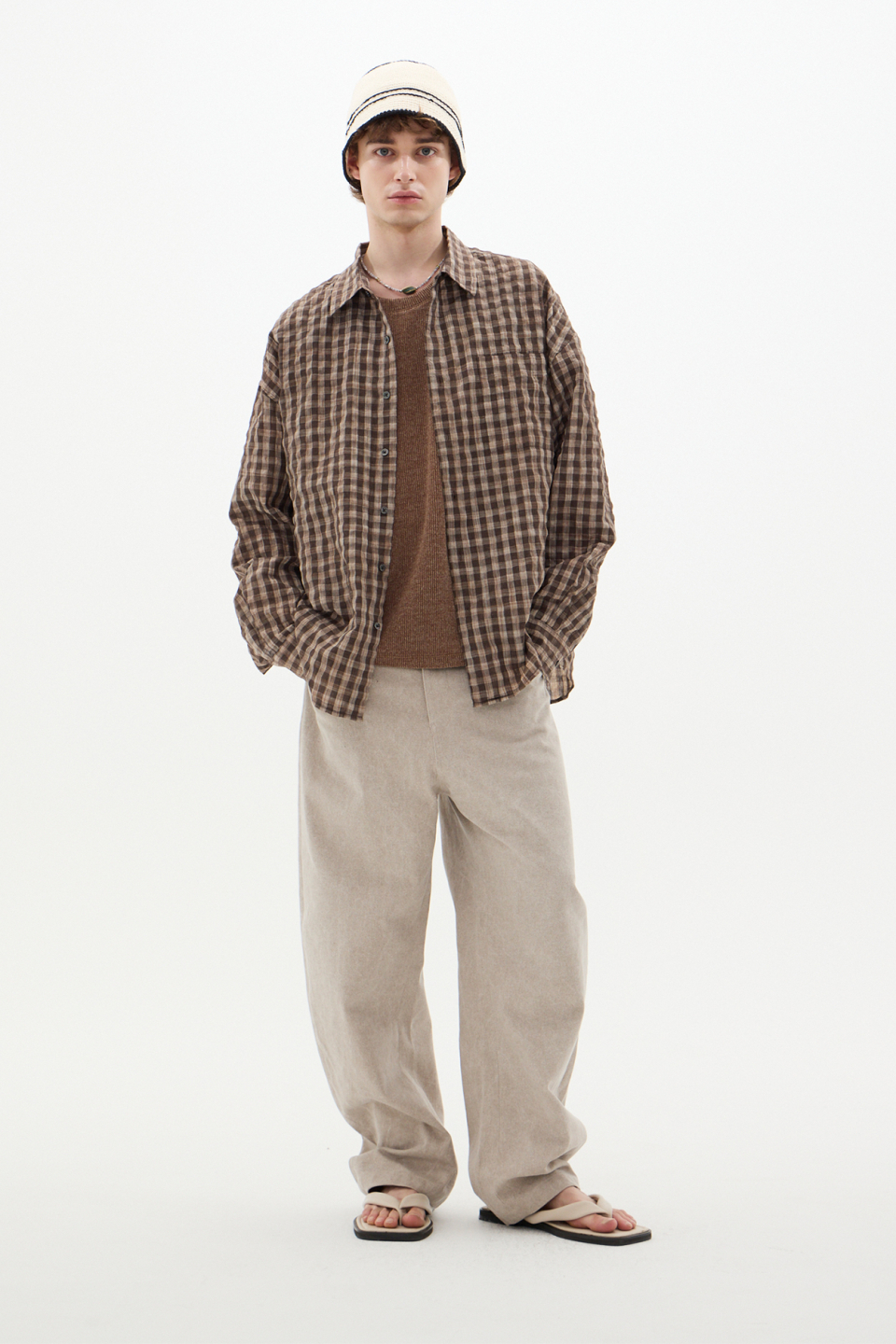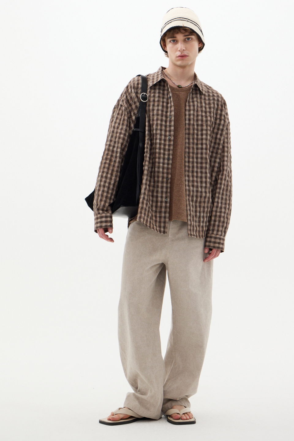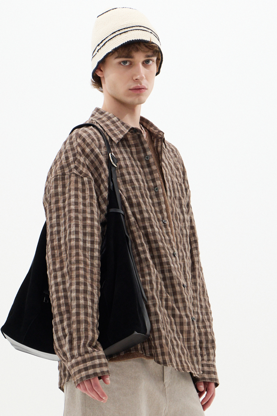 섬세한 텍스처가 감도는 브라운 체크 셔츠