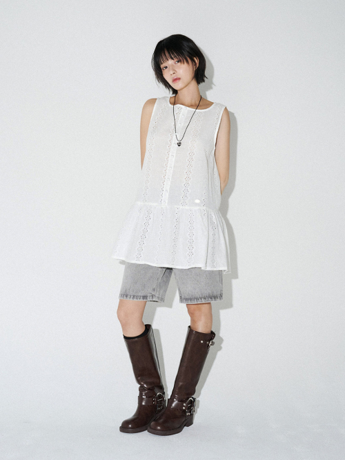 아일렛 자수 미니 원피스 (화이트)