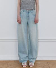 크라우드 워싱 와이드 데님 팬츠 라이트블루
