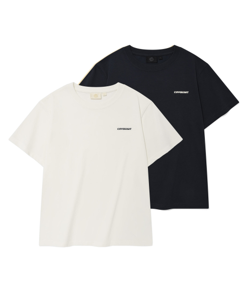 [2PACK] 우먼 쿨 코튼 에센셜 티셔츠 Dark Navy+White