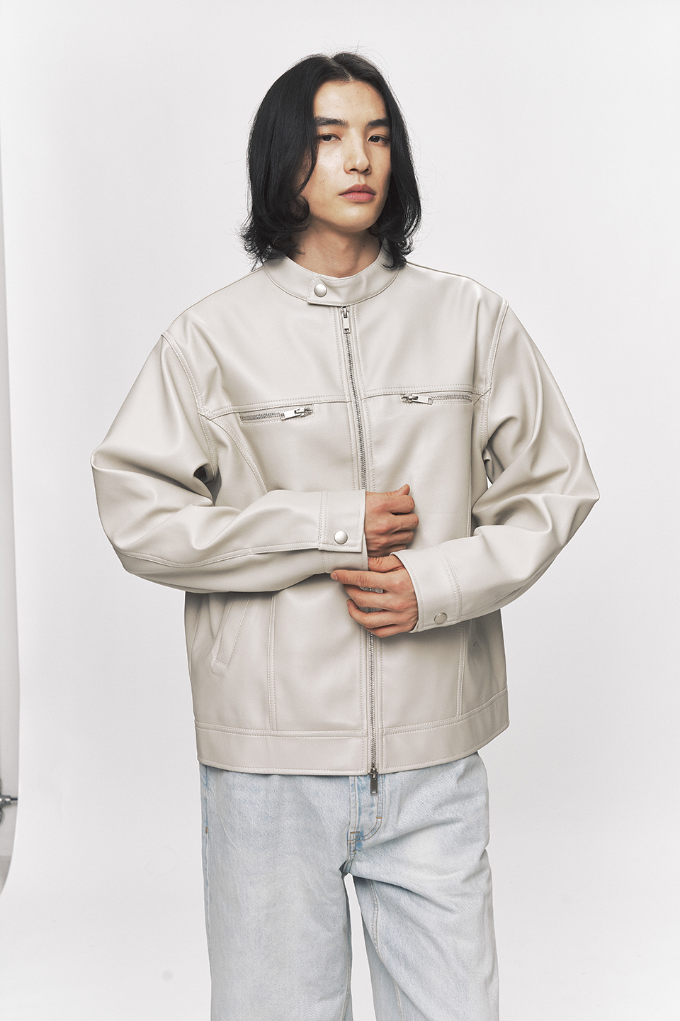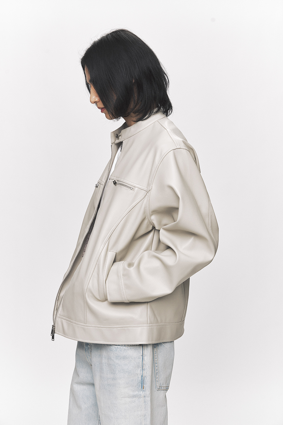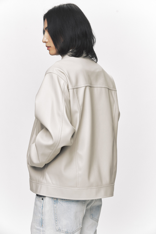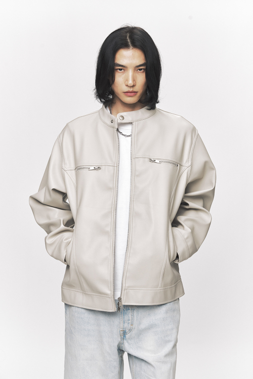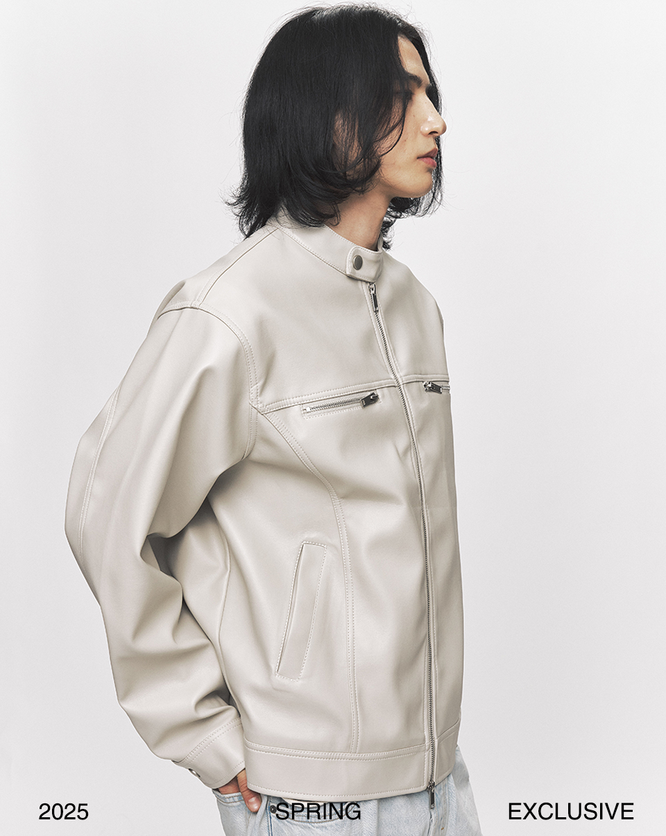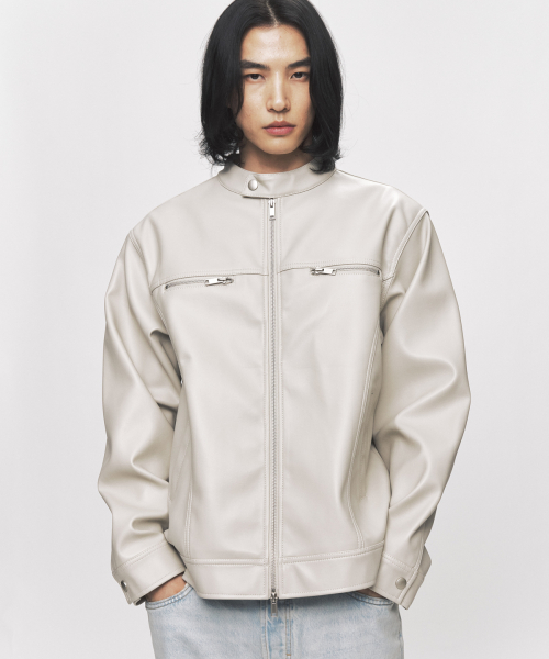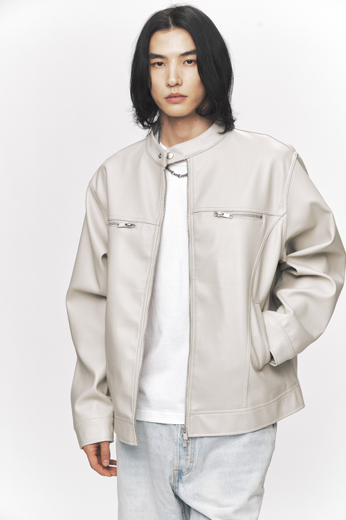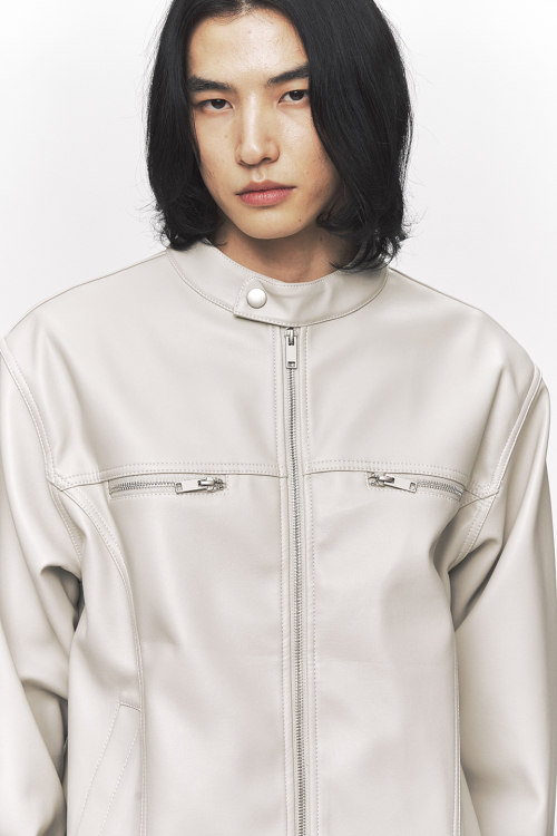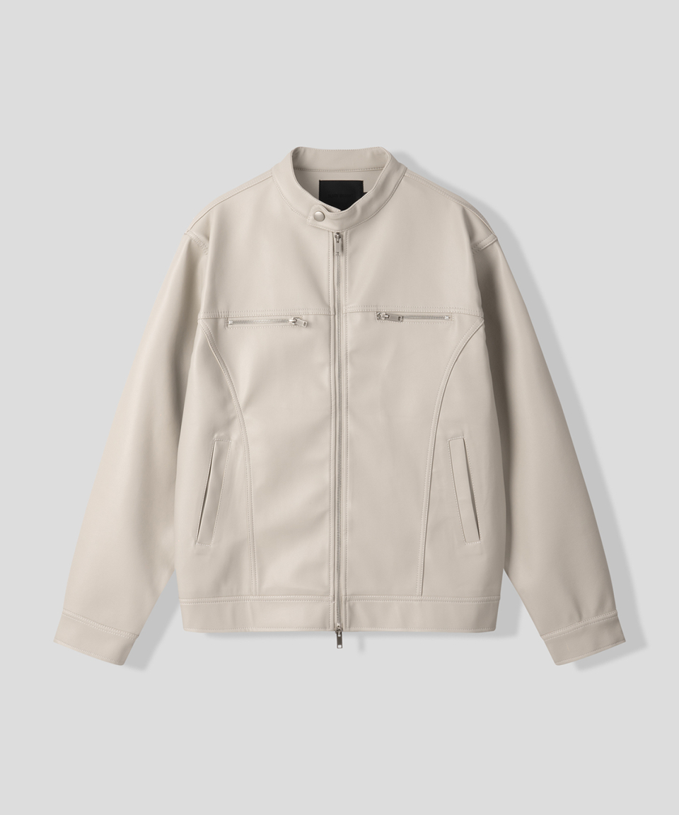 모던 비건 레더 바이커 자켓 [크림]