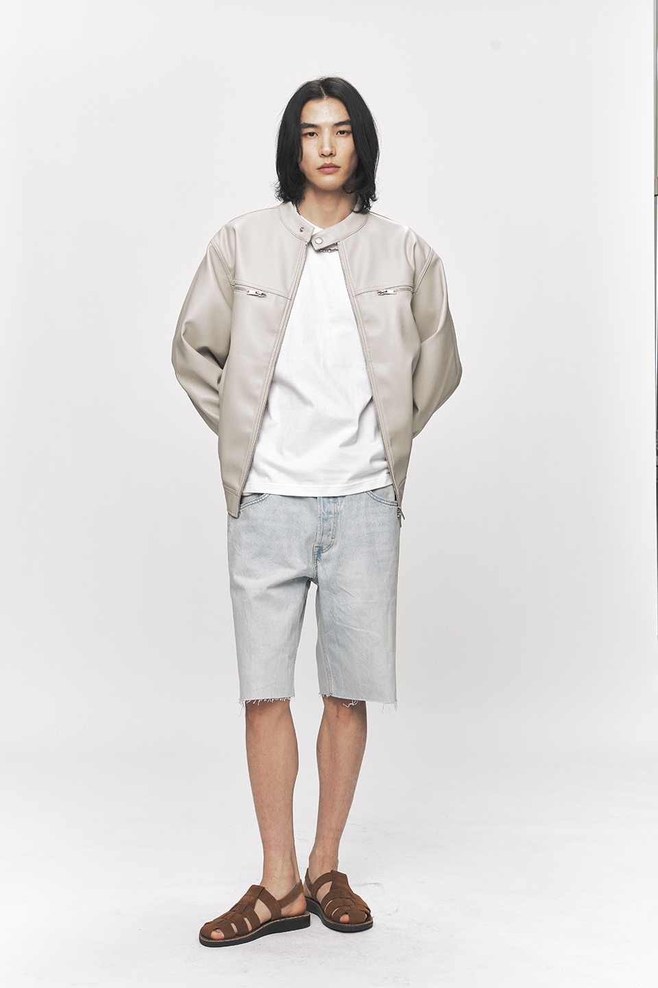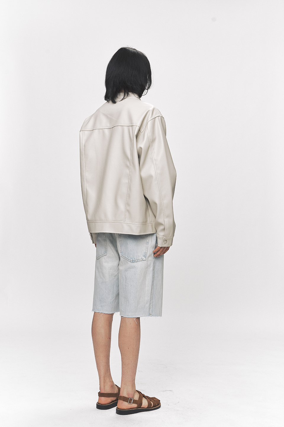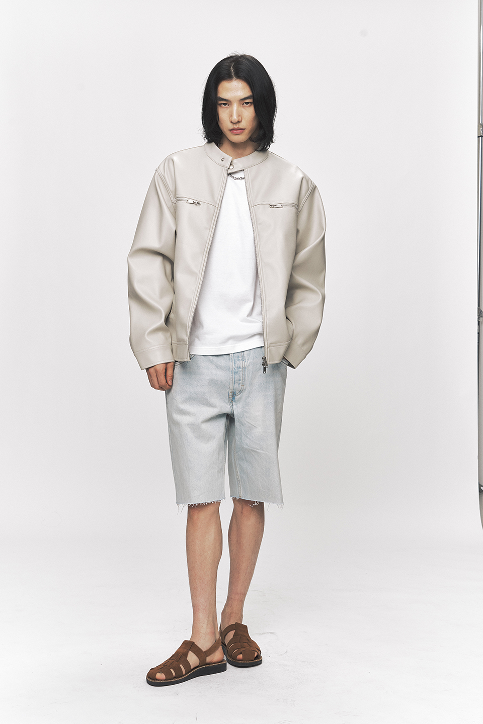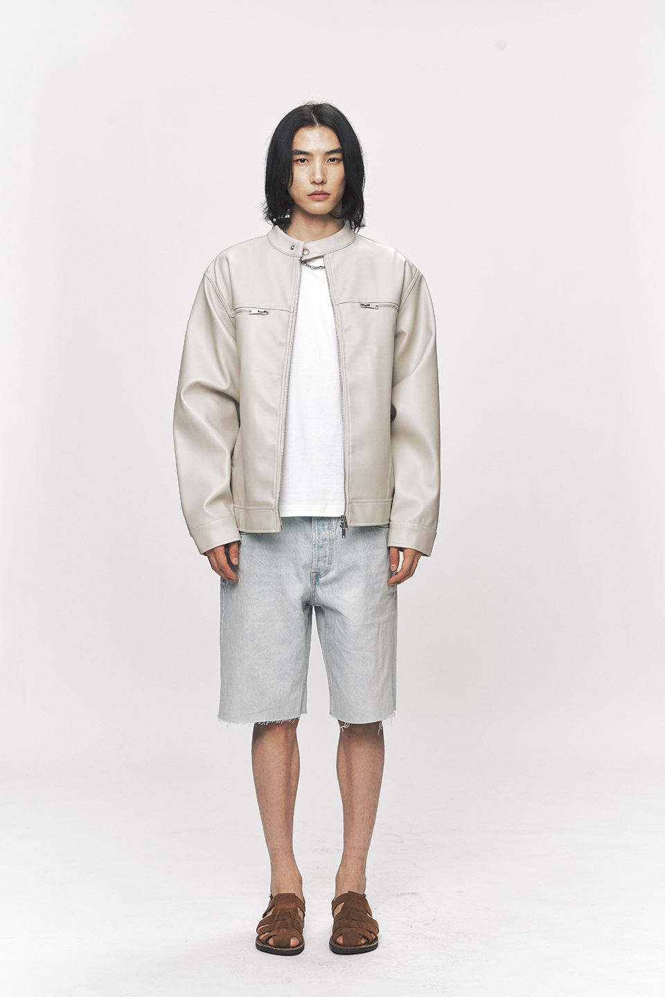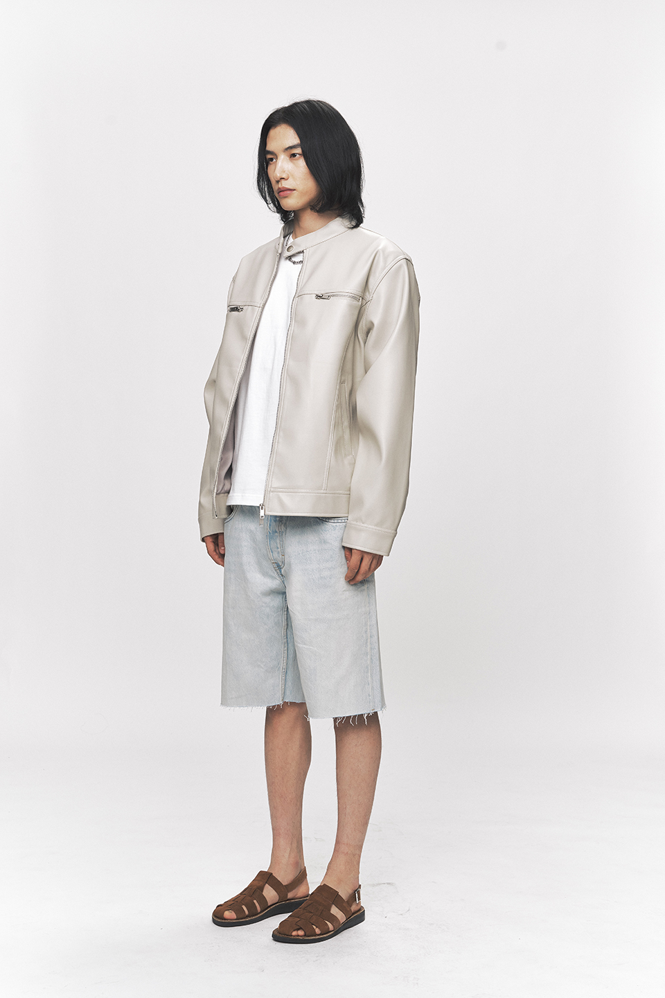 모던 비건 레더 바이커 자켓 [크림]