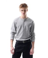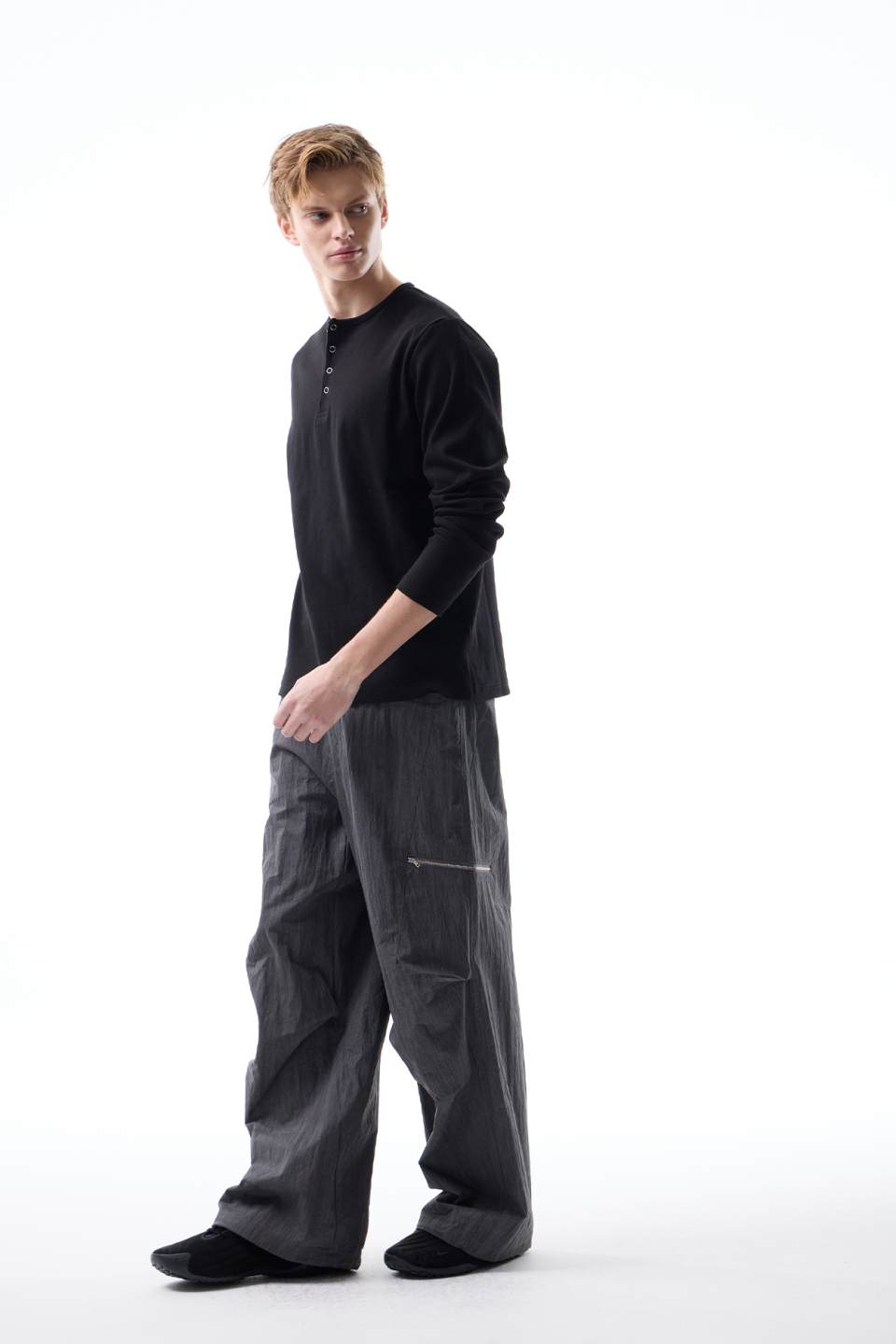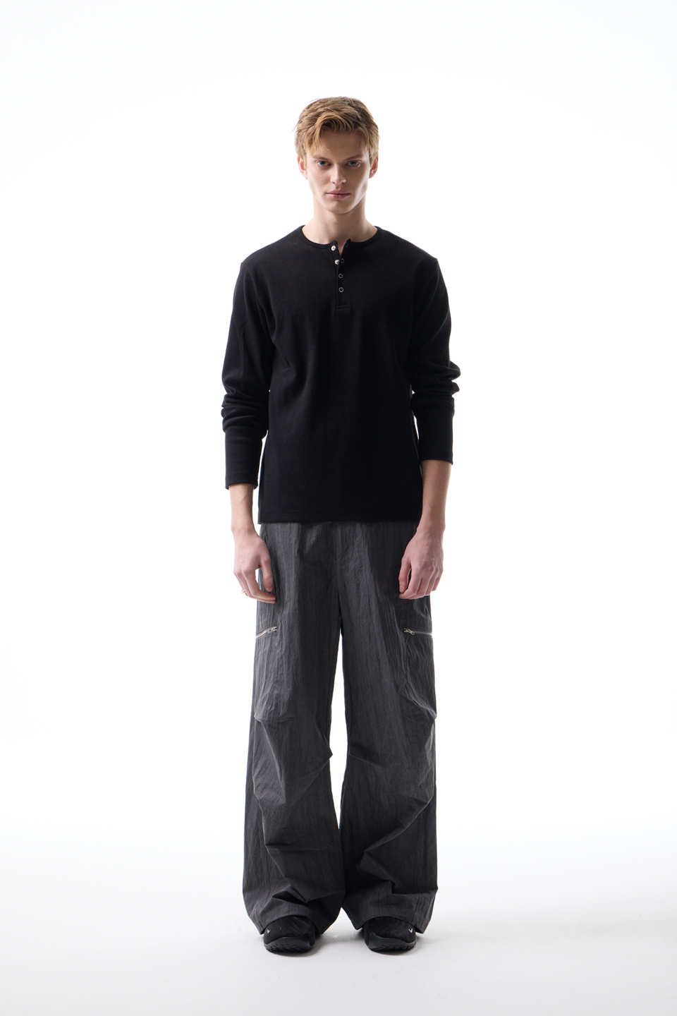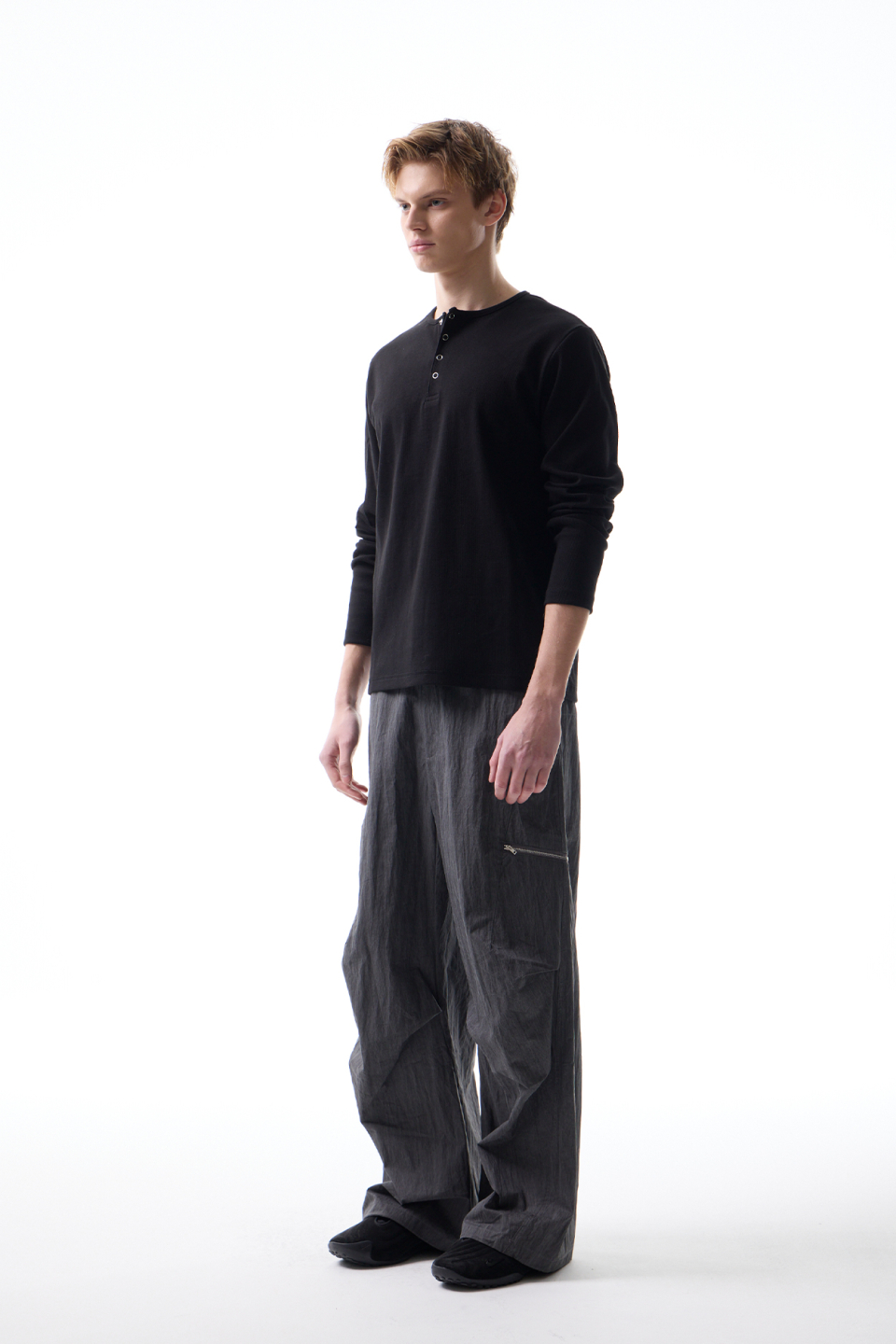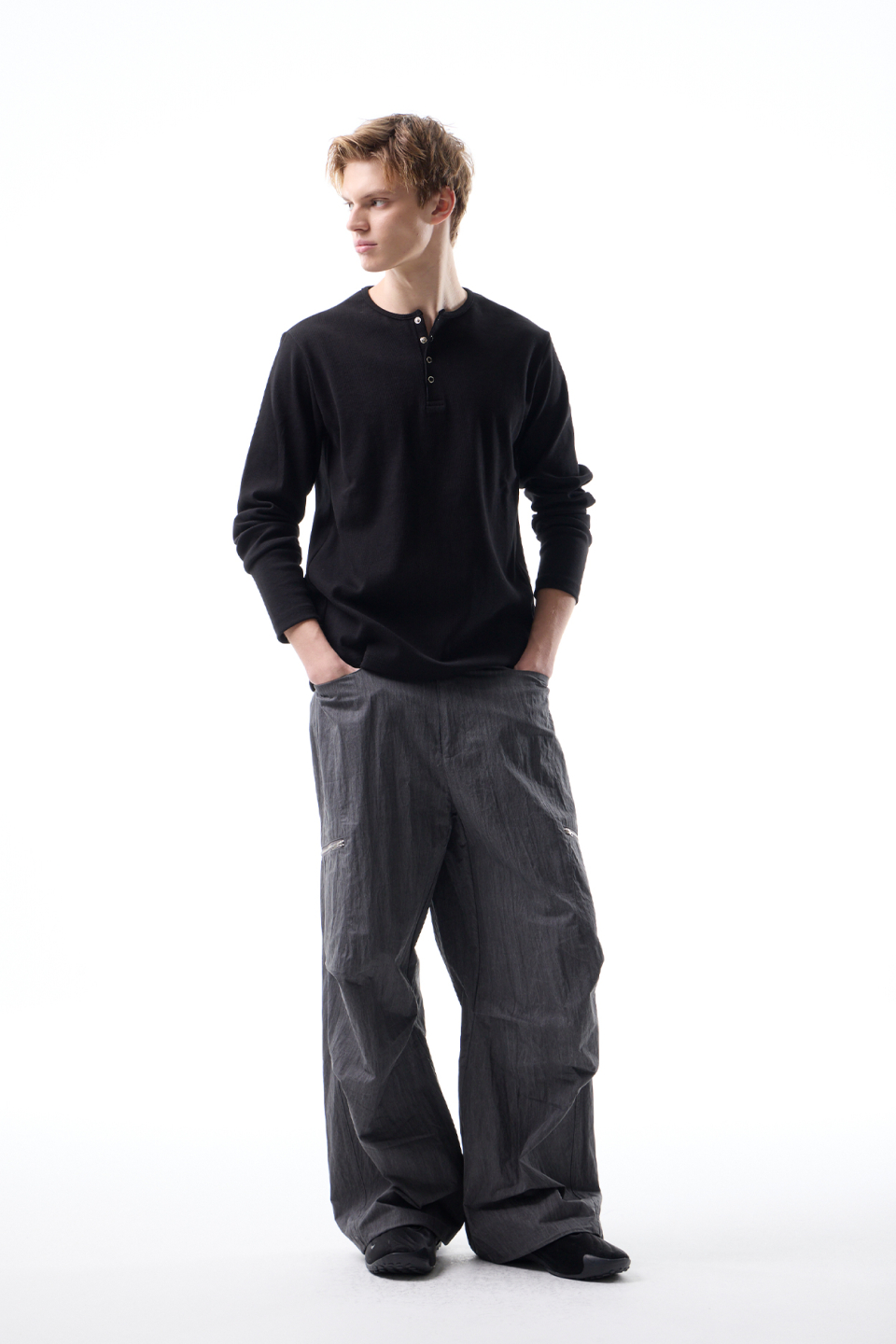 부드러운 텍스처와 견고한 골지 짜임의 헨리넥 티셔츠