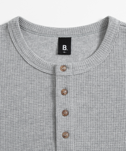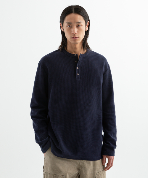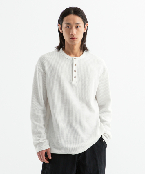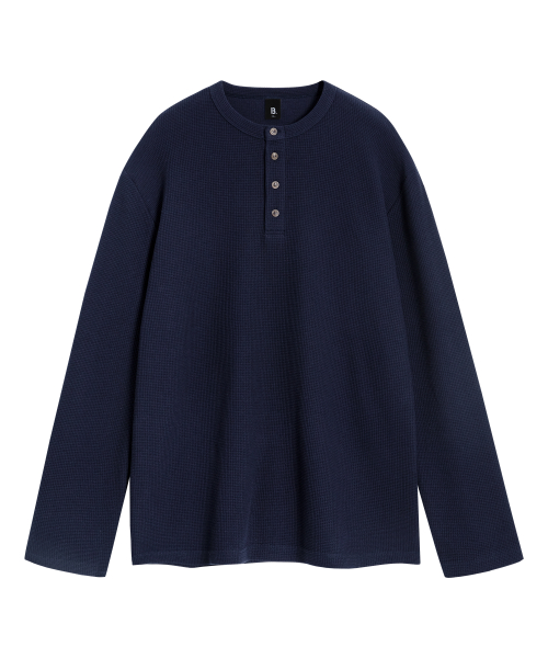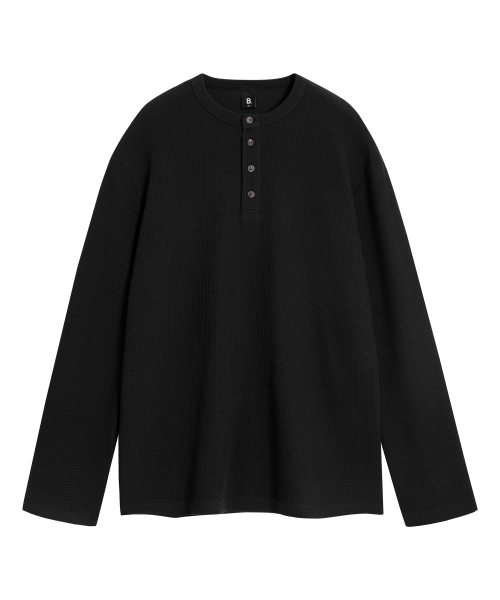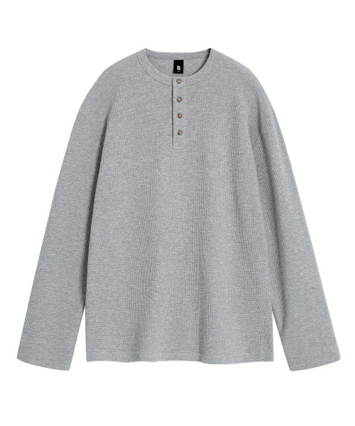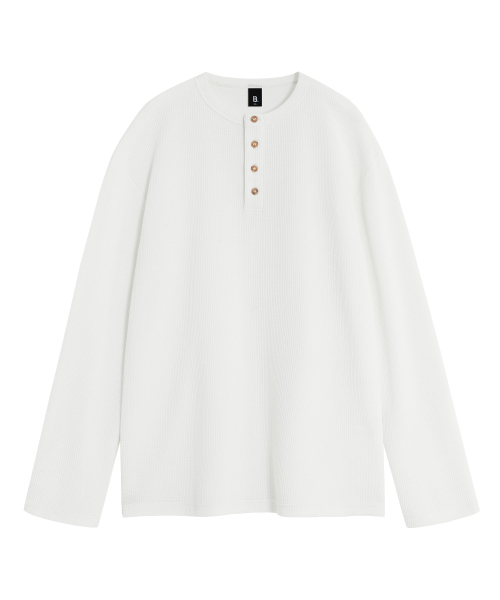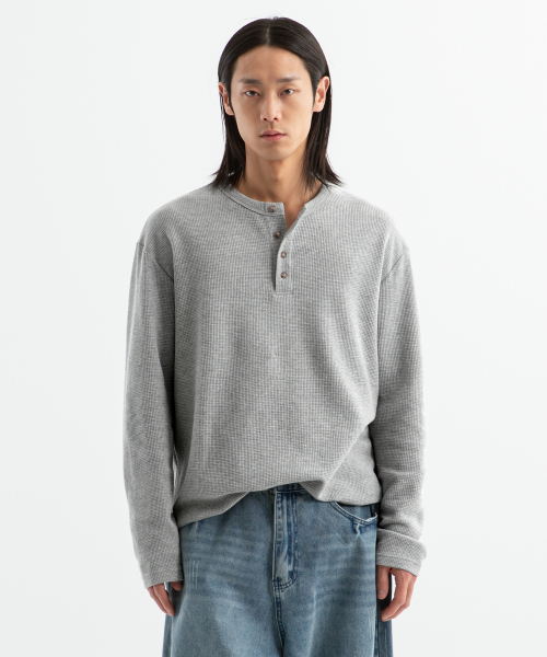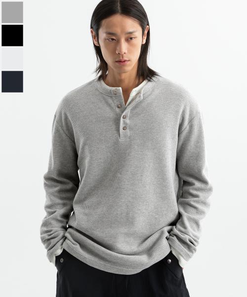( Waffle ) 루즈핏 와플 헨리넥 긴팔티 ( 4Color )
