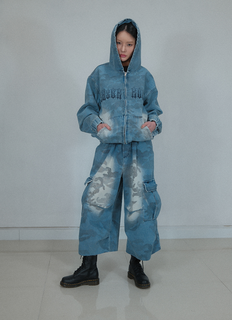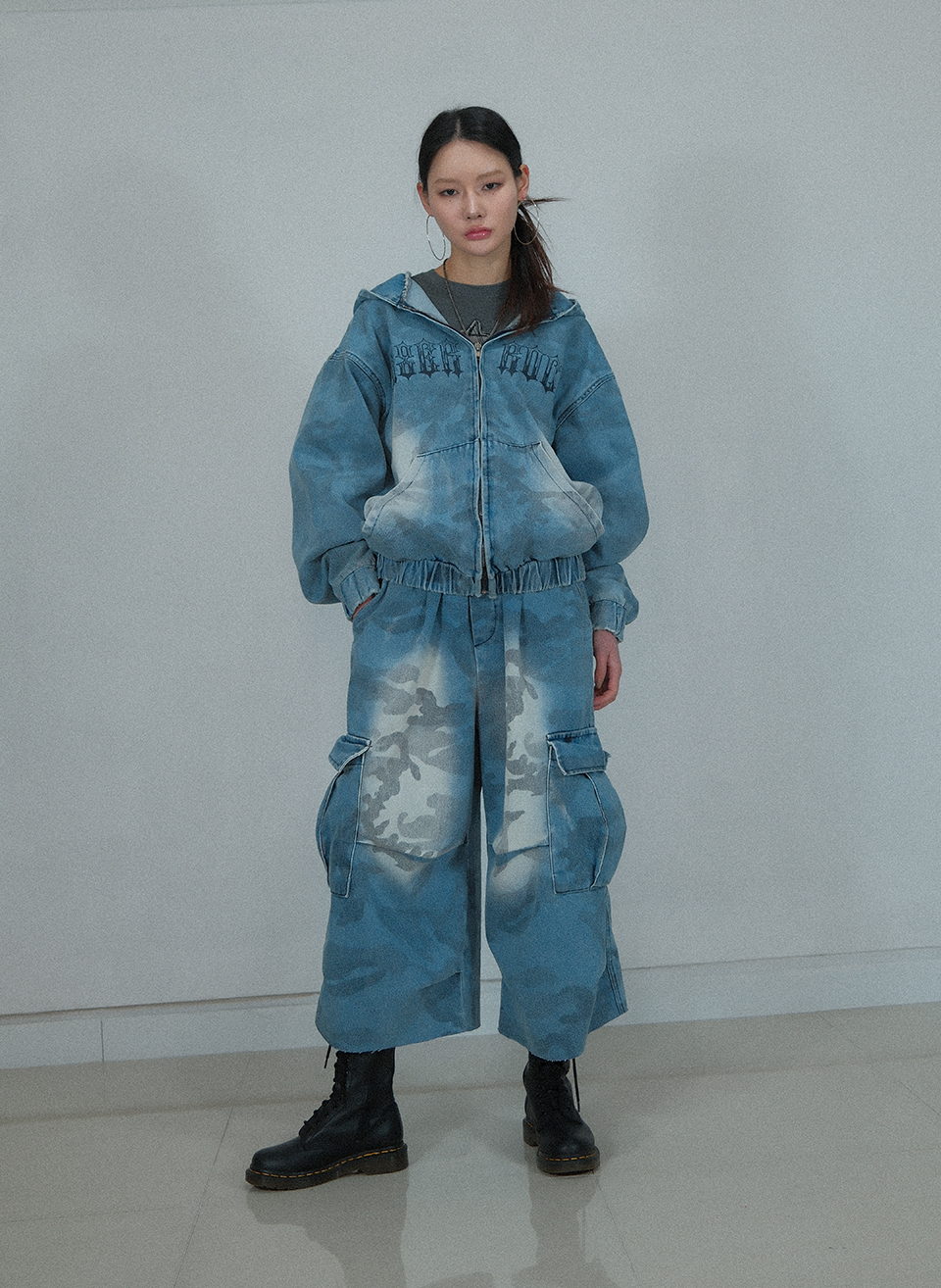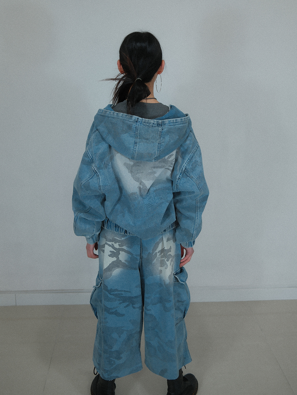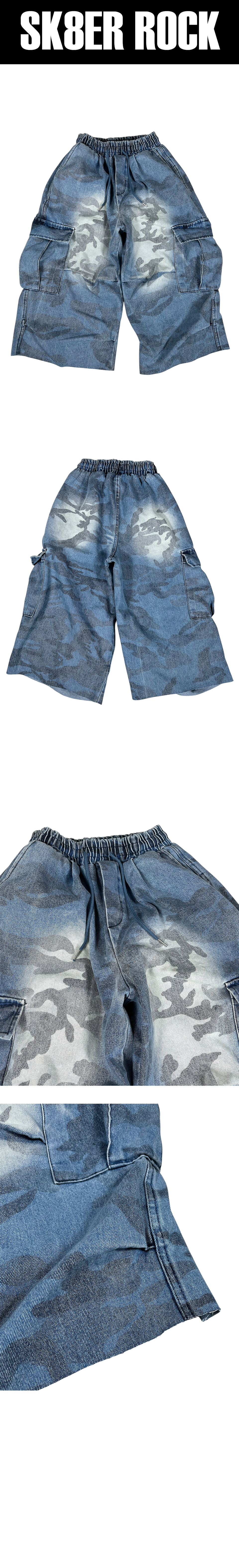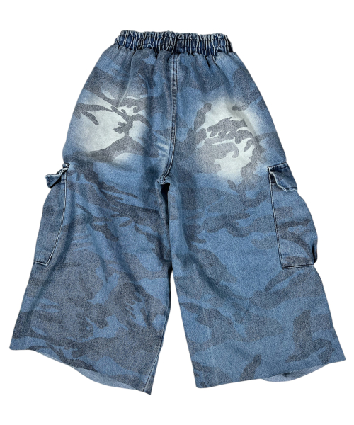 Cargo Camouflage Denim Cropped Pants ((blue))