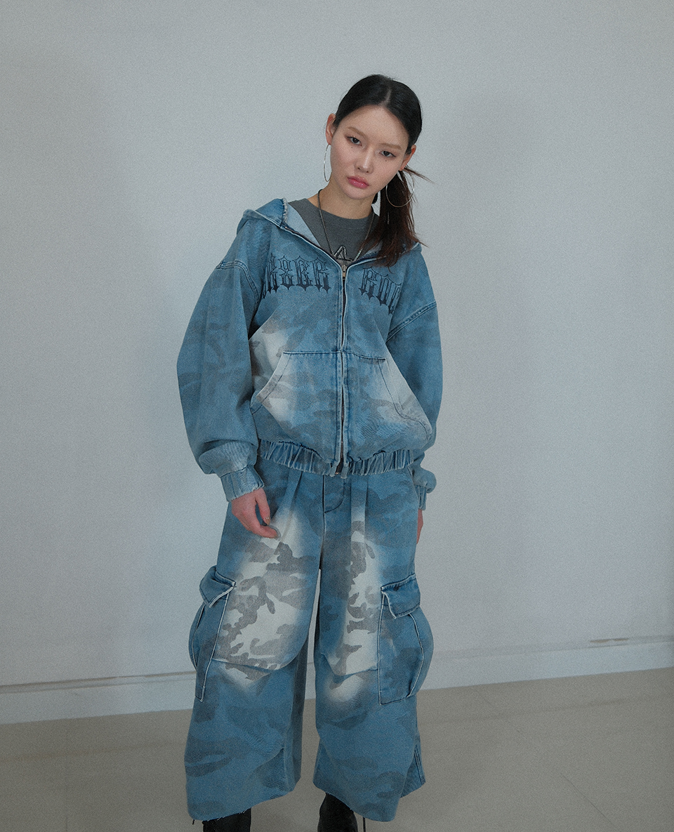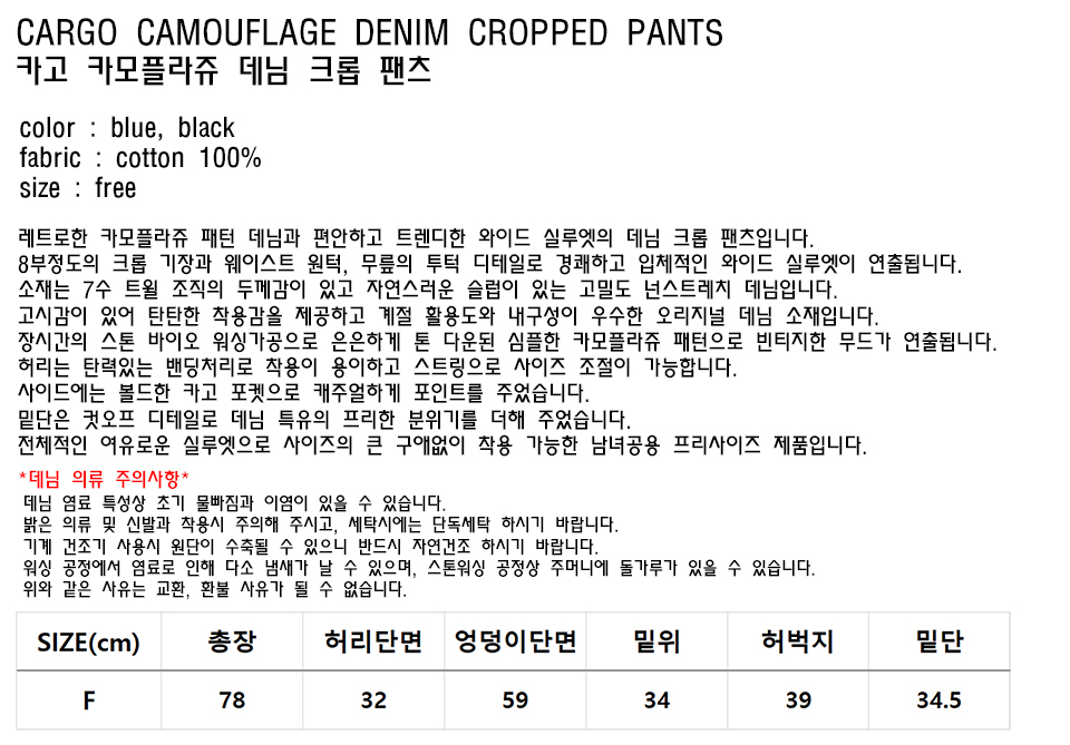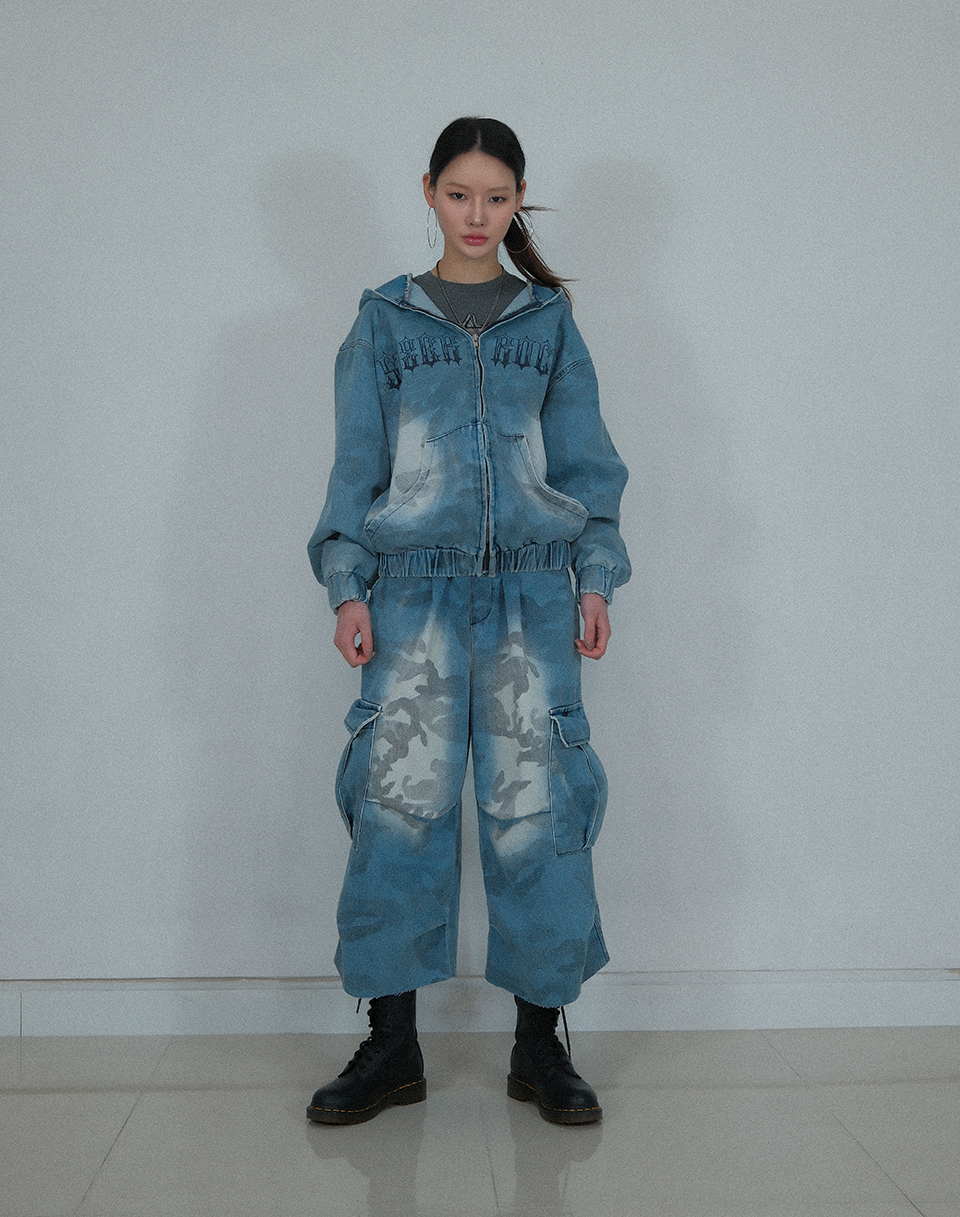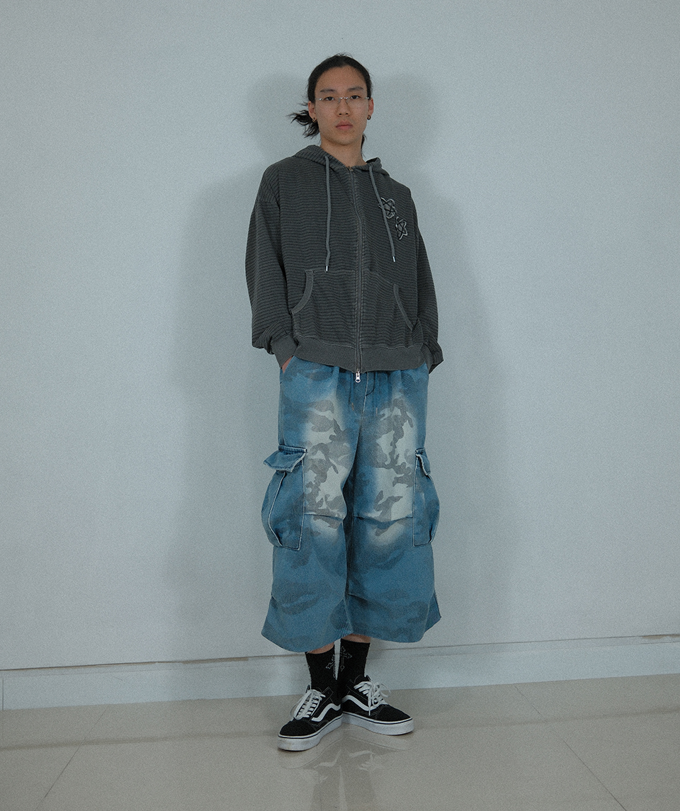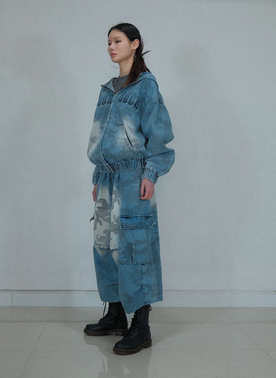 Cargo Camouflage Denim Cropped Pants ((blue))