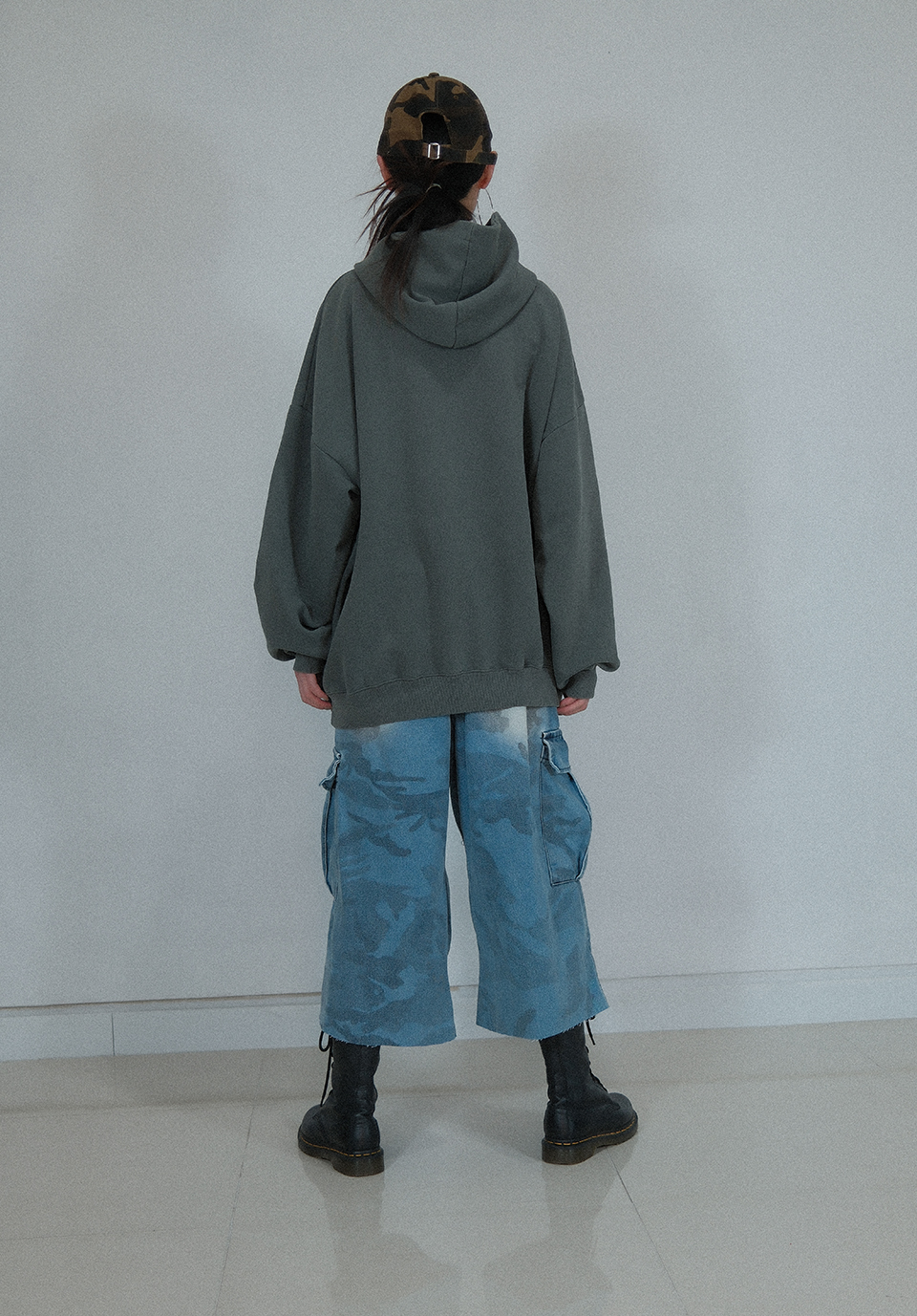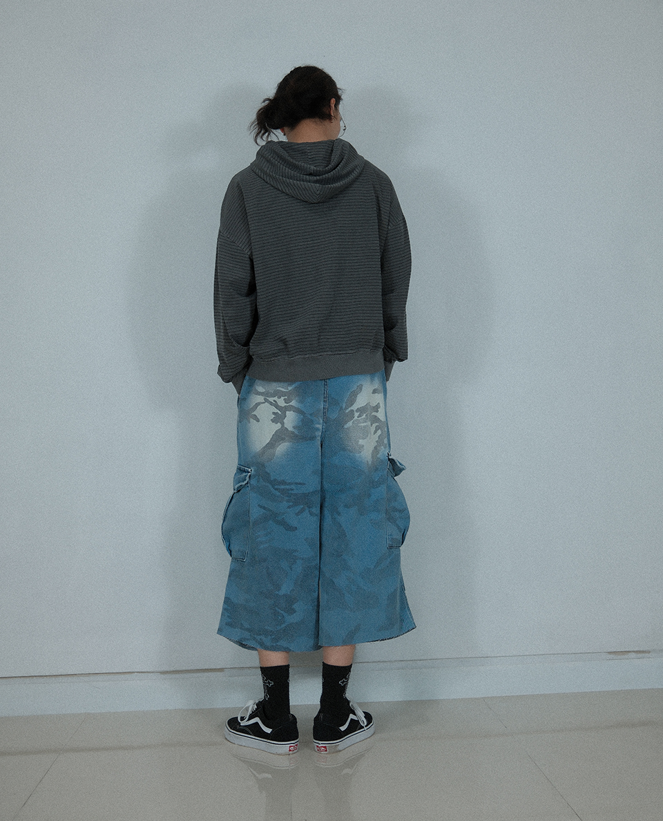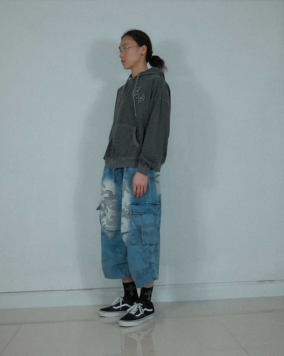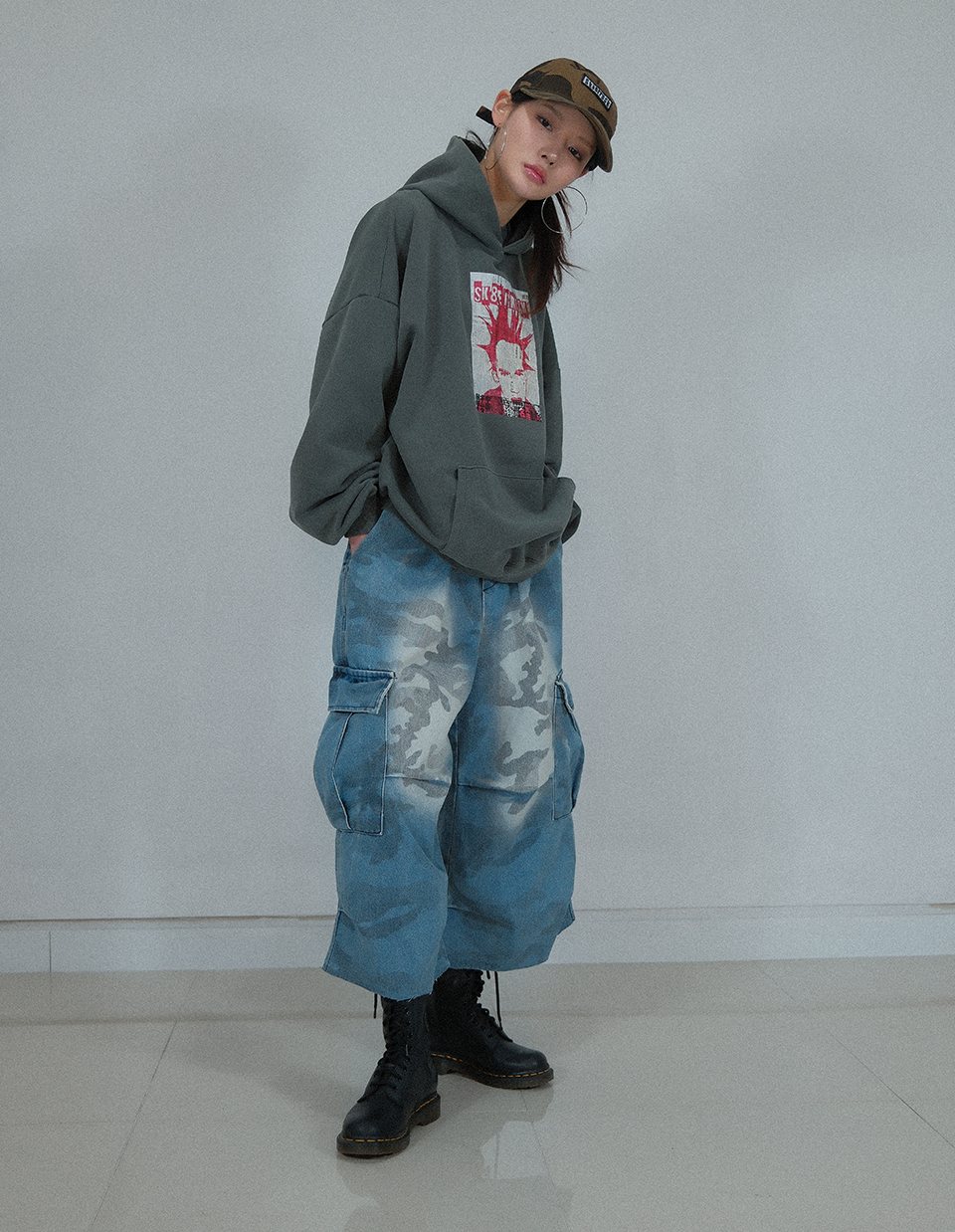 Cargo Camouflage Denim Cropped Pants ((blue))