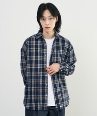 네추럴 오버핏 체크 셔츠 [NAVY]