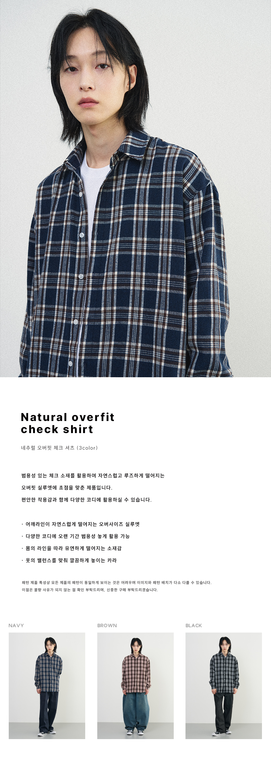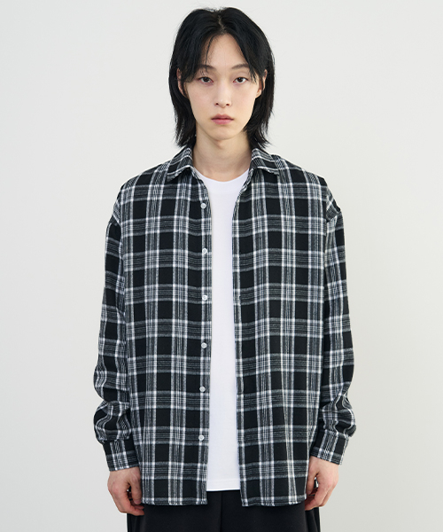 네추럴 오버핏 체크 셔츠 [BLACK]