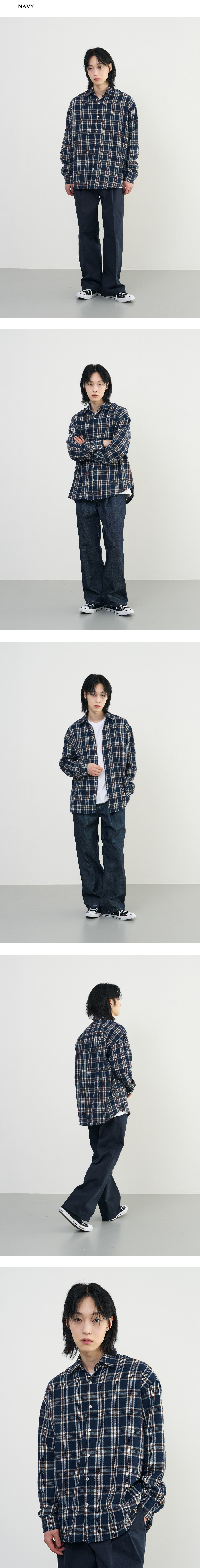 네추럴 오버핏 체크 셔츠 [NAVY]