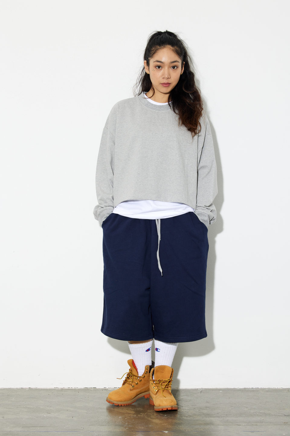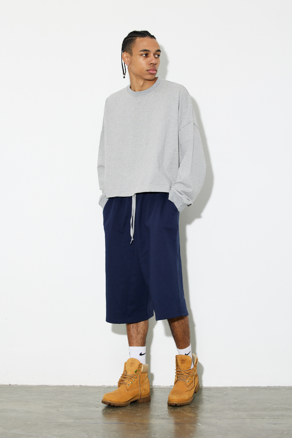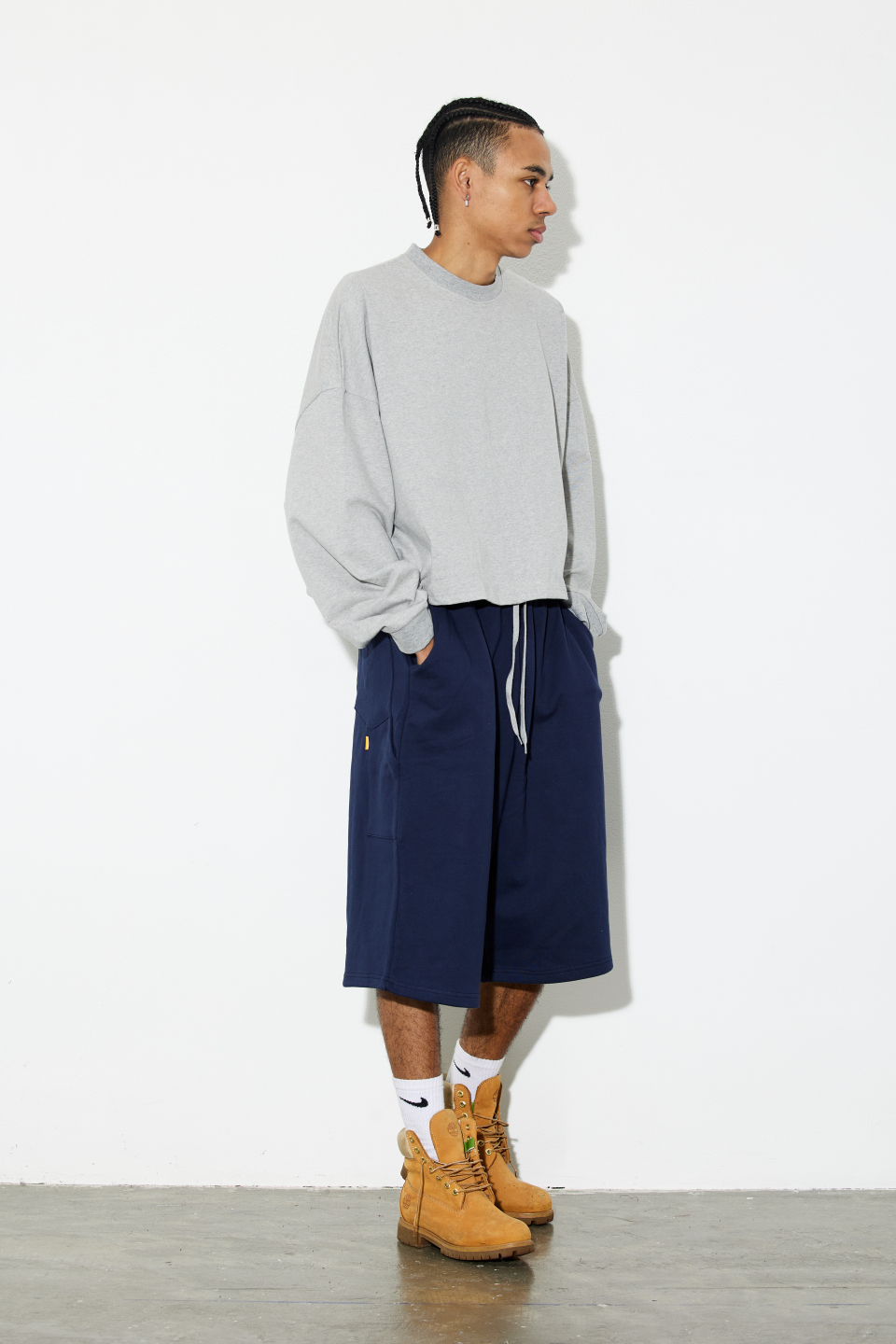 1.루즈한 오버핏 버뮤다 팬츠 제품입니다.