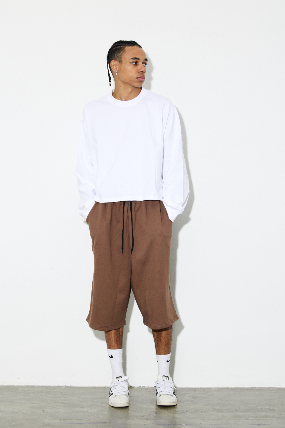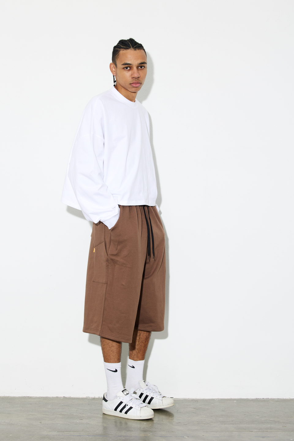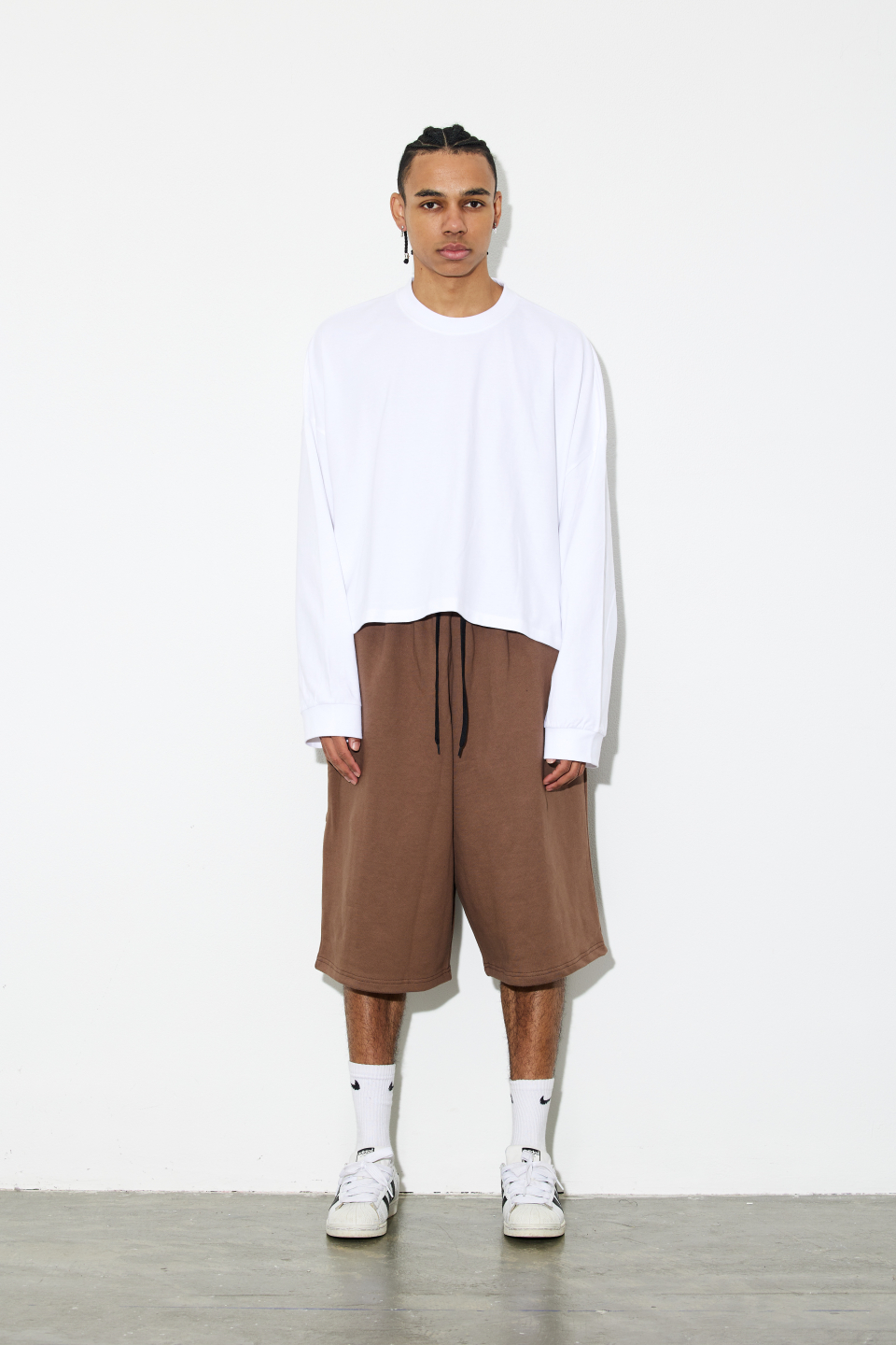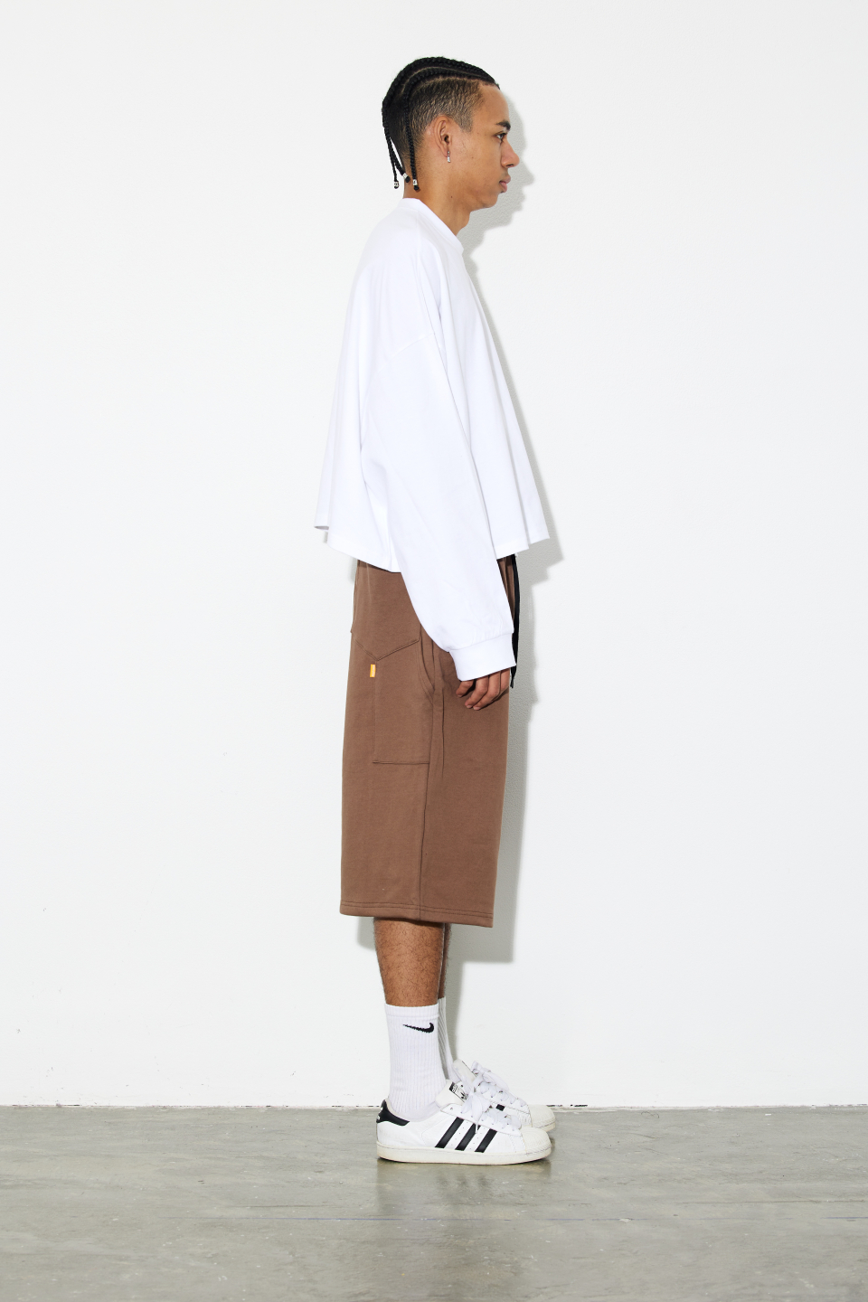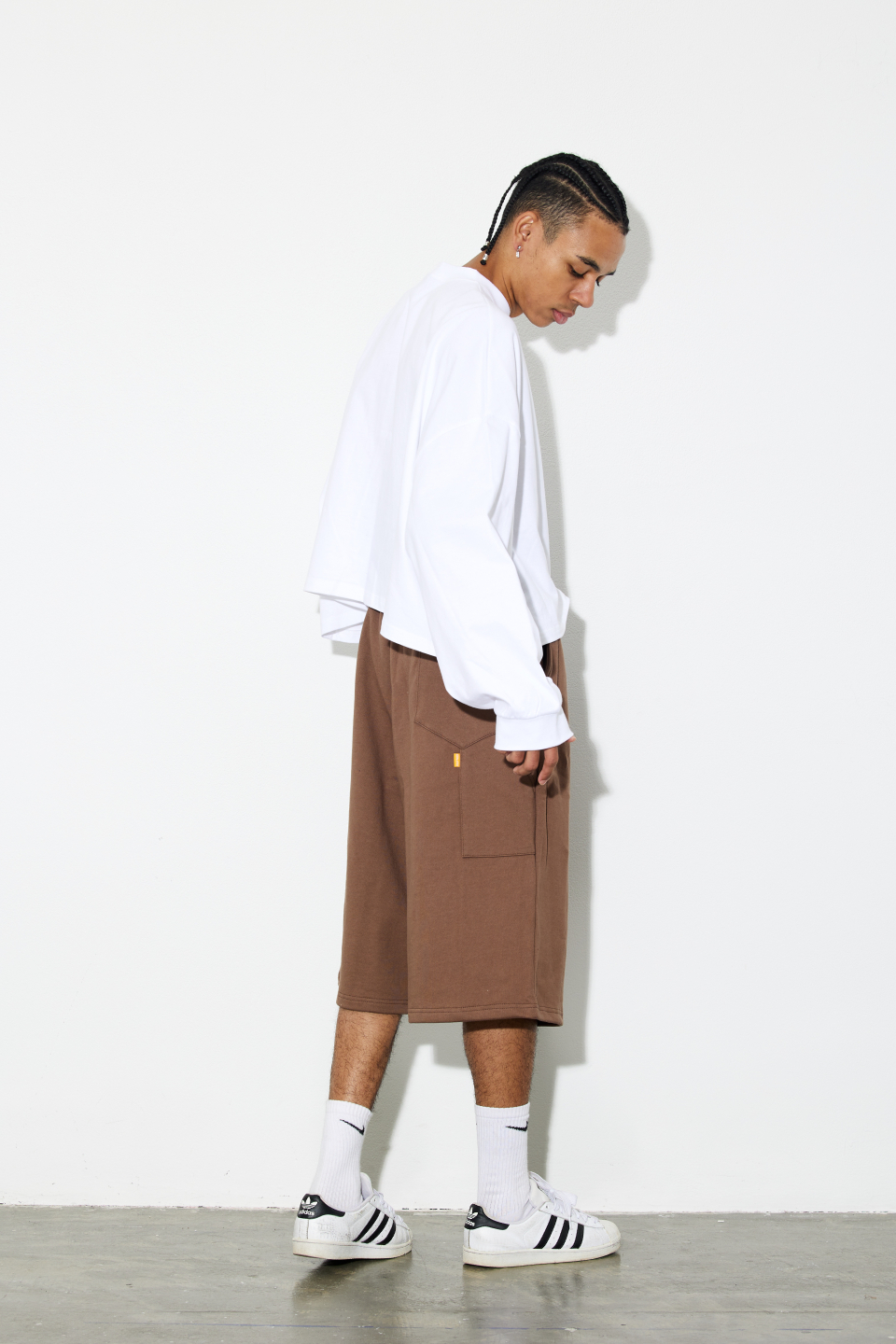 1.루즈한 오버핏 버뮤다 팬츠 제품입니다.