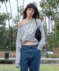 OFF-SHOULDER JERSEY TEE_MELANGE GREY [LC261TS05MG]