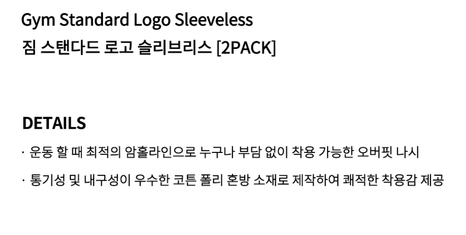 [2PACK] 짐 스탠다드 로고 슬리브리스 (3COLOR)
