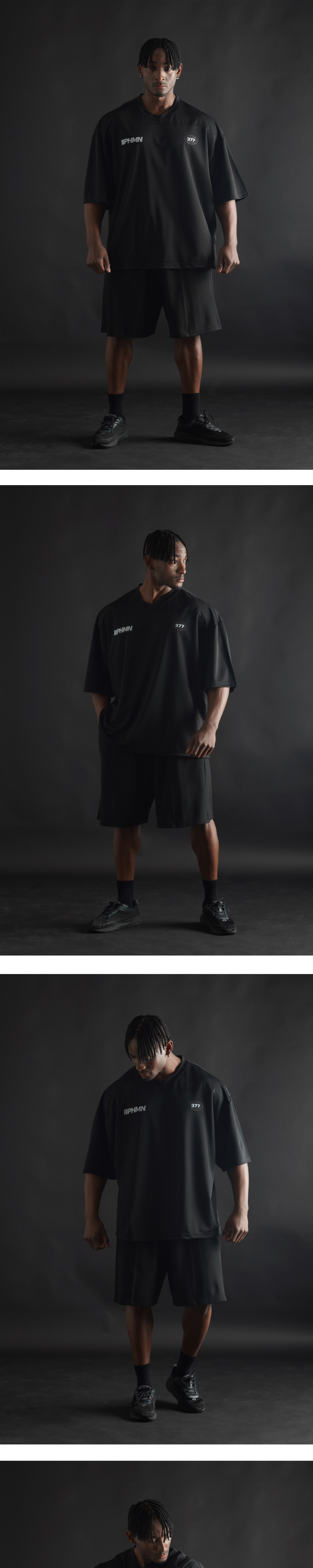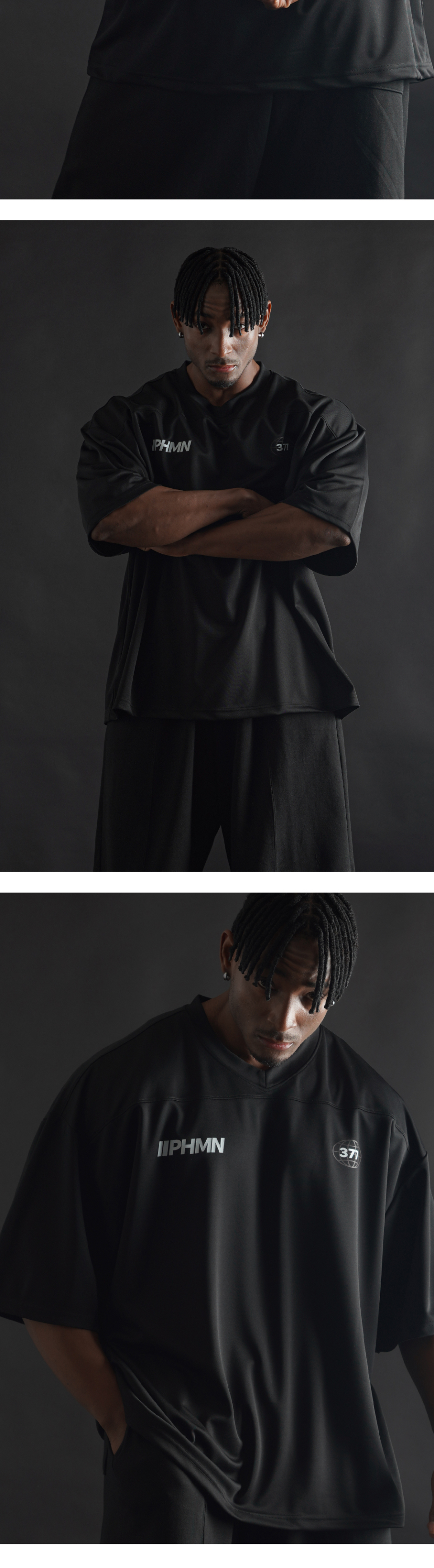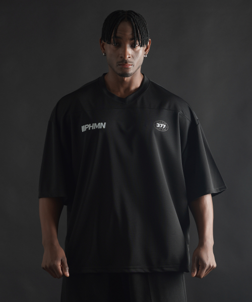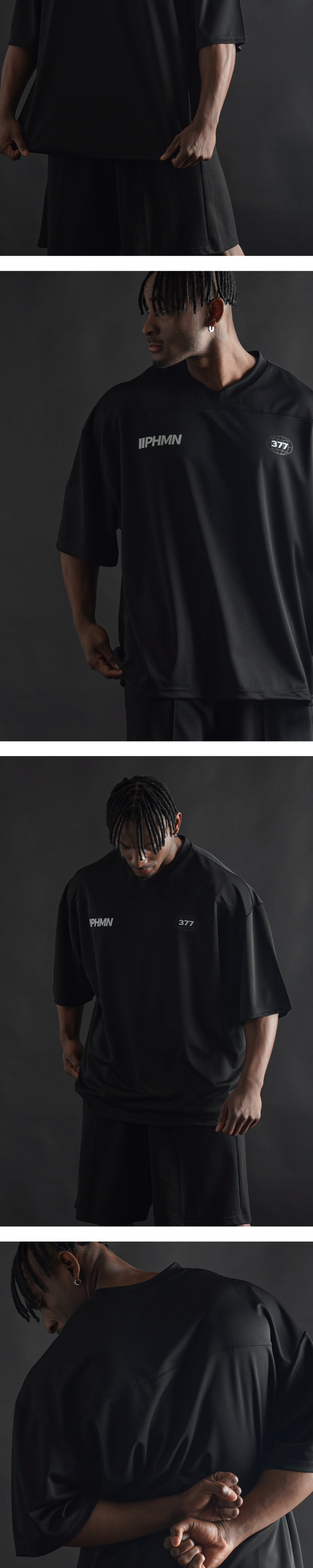 럭비 오버핏 메시 저지 하프 슬리브_블랙