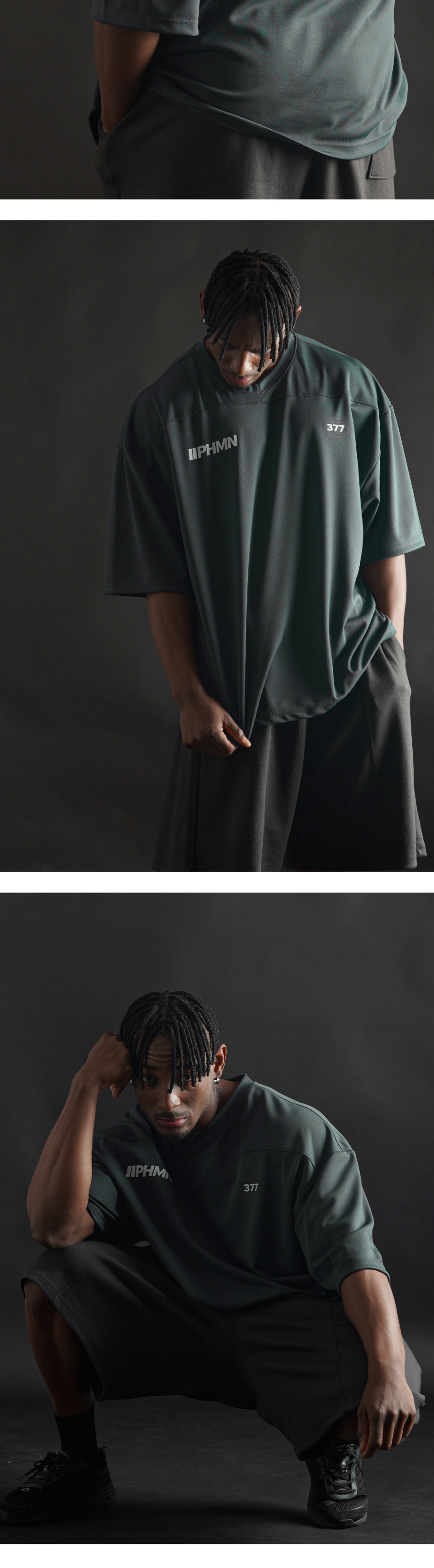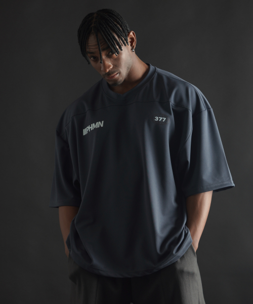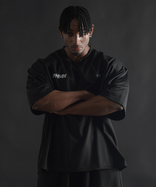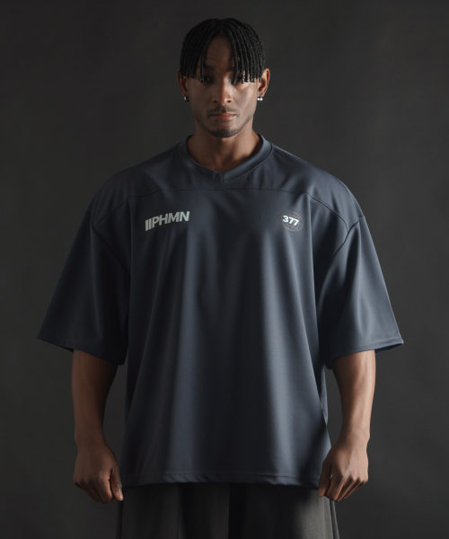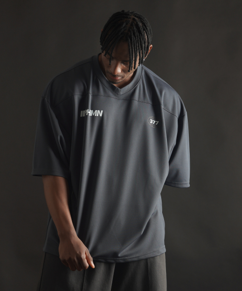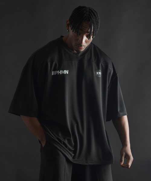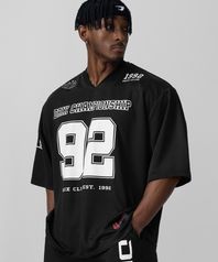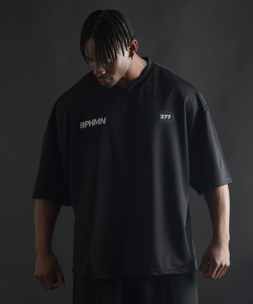 럭비 오버핏 메시 저지 하프 슬리브_블랙
